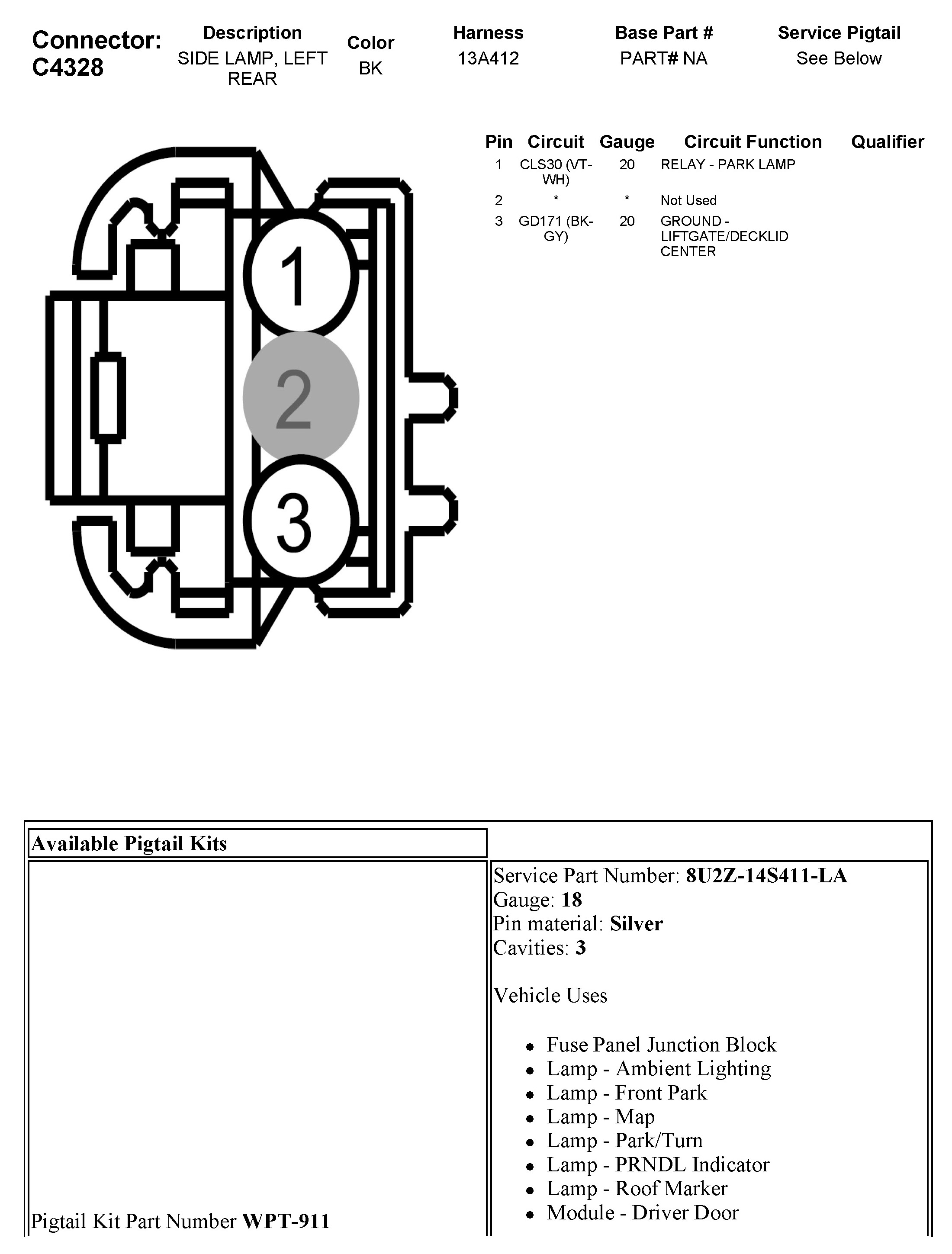C4328 Side Lamp, Left Rear