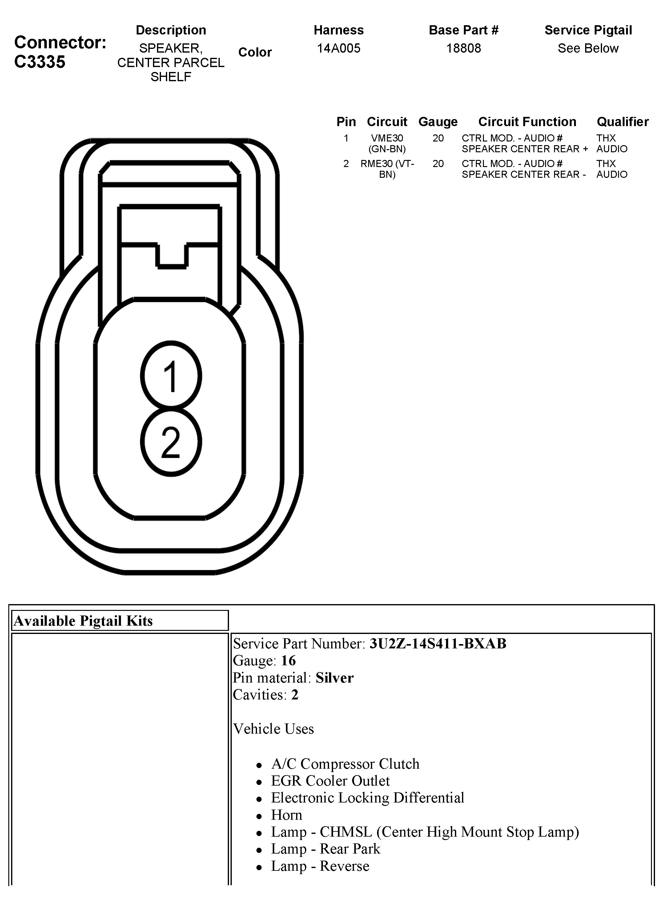 C3335 Speaker, Center Parcel Shelf