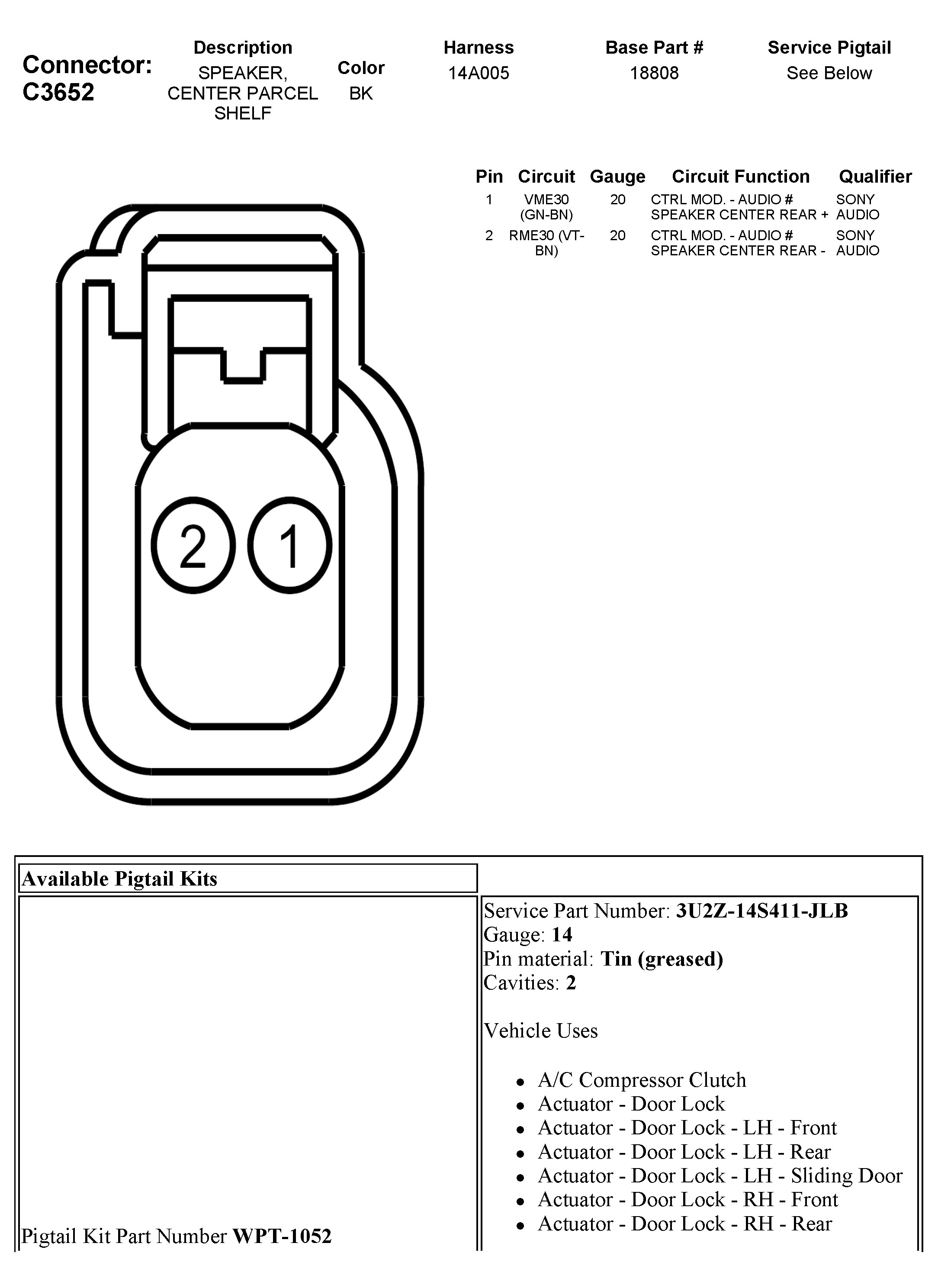 C3652 Speaker, Center Parcel Shelf