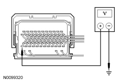 - With the service disconnect plug removed, measure the voltage between BPSM (Battery Pack Sensor Module) C4238B-35, circuit J2-B35, harness side and ground by back-probing at C4238B-35.