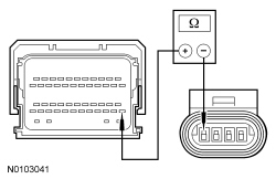 - With the service disconnect plug removed, measure the resistance between ACCM (Air Conditioning Compressor Module) C1469B pin 1, component side and ground; and between ACCM (Air Conditioning Compressor Module) C1469B pin 2, component side and ground.