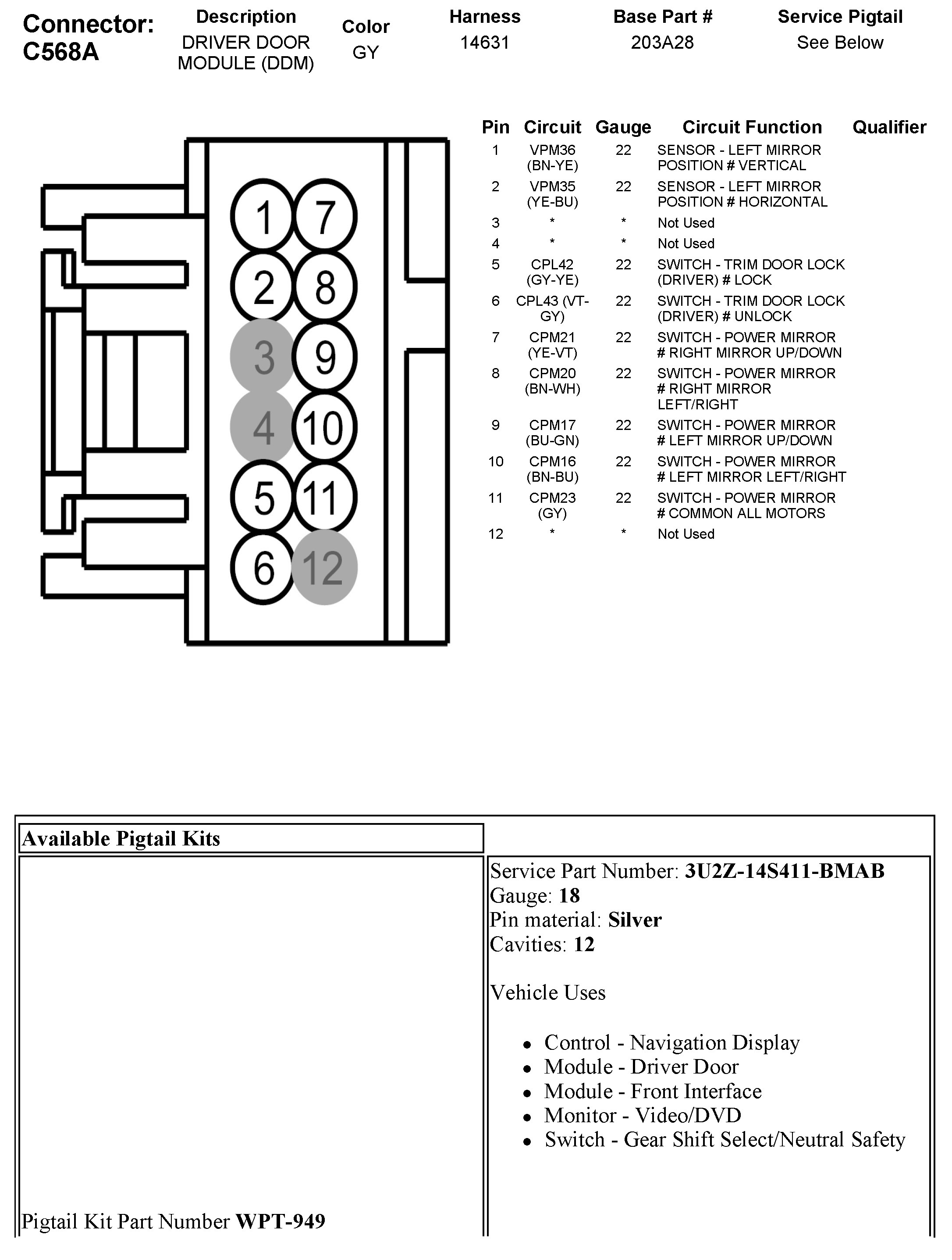 C568A Driver Door Module (DDM)