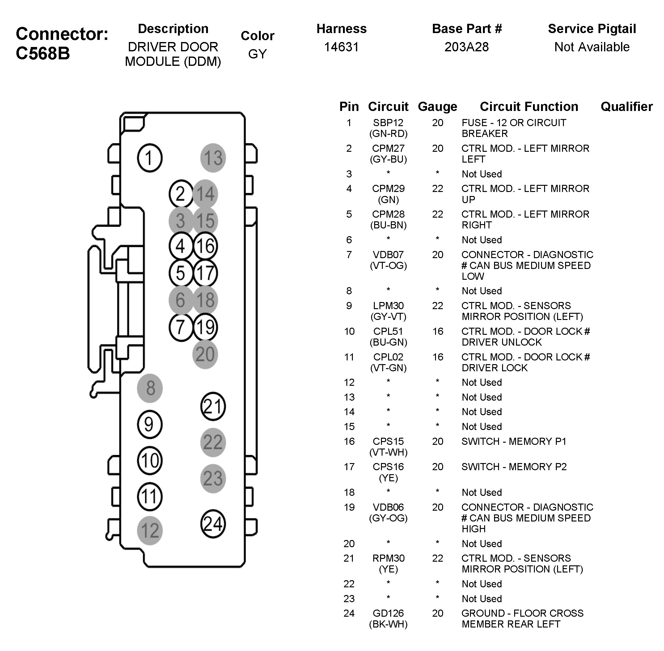C568B Driver Door Module (DDM)