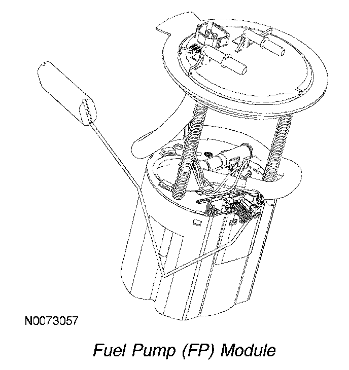The FP module is a device that contains the fuel pump and sender assembly. The fuel pump is located inside the FP module and supplies fuel through the FP module manifold to the engine and FP module jet pump. The jet pump continuously refills the reservoir with fuel, and a check valve located in the manifold outlet maintains system pressure when the fuel pump is not energized. A flapper valve located in the bottom of the reservoir allows fuel to enter the reservoir and prime the fuel pump during the initial fill.