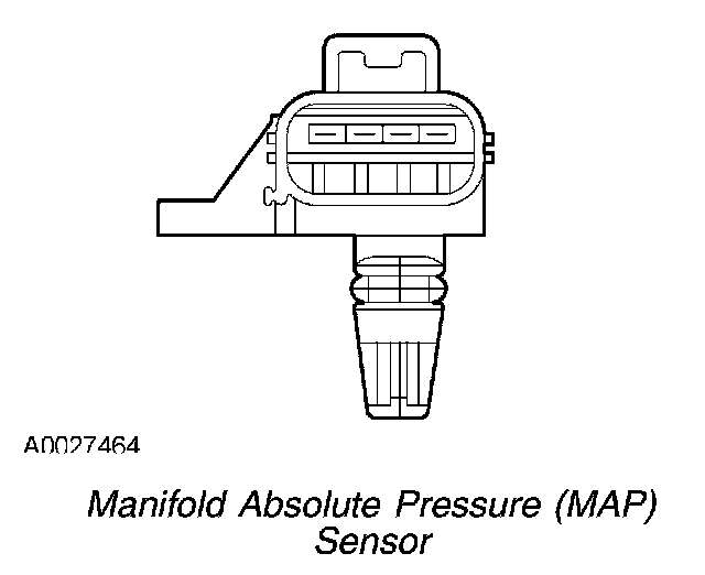 The MAP sensor uses a piezo-resistive silicon sensing element to provide a voltage proportional to the absolute pressure in the intake manifold.