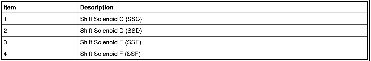 Shift Control Solenoids (SSC (Shift Solenoid C) , SSD (Shift Solenoid D) , SSE (Shift Solenoid E) , SSF (Shift Solenoid F))