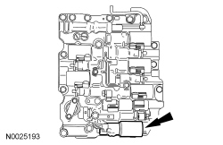 The Line Pressure Control (LPC) is installed on the front valve body. Based on a signal indicating the degree to which the throttle is opened, engine torque, and according to a duty ratio predetermined in the TCM (Transmission Control Module) , the solenoids control line hydraulic pressure by linearly changing the comparable throttle hydraulic pressure. Through this, it controls operating hydraulic pressure to the clutch and brakes for smooth shifting. As a fail-safe function, if any shift control solenoid assembly abnormality occurs, the TCM (Transmission Control Module) will disable the current to the shift control solenoids. The line pressure is maximized, if the shift control solenoid assembly current is disabled when any abnormality other than locking occurs.