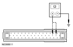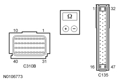 - Measure the resistance between the ABS module C135, harness side and the RCM (Restraints Control Module) C310B, harness side as indicated in the following chart: