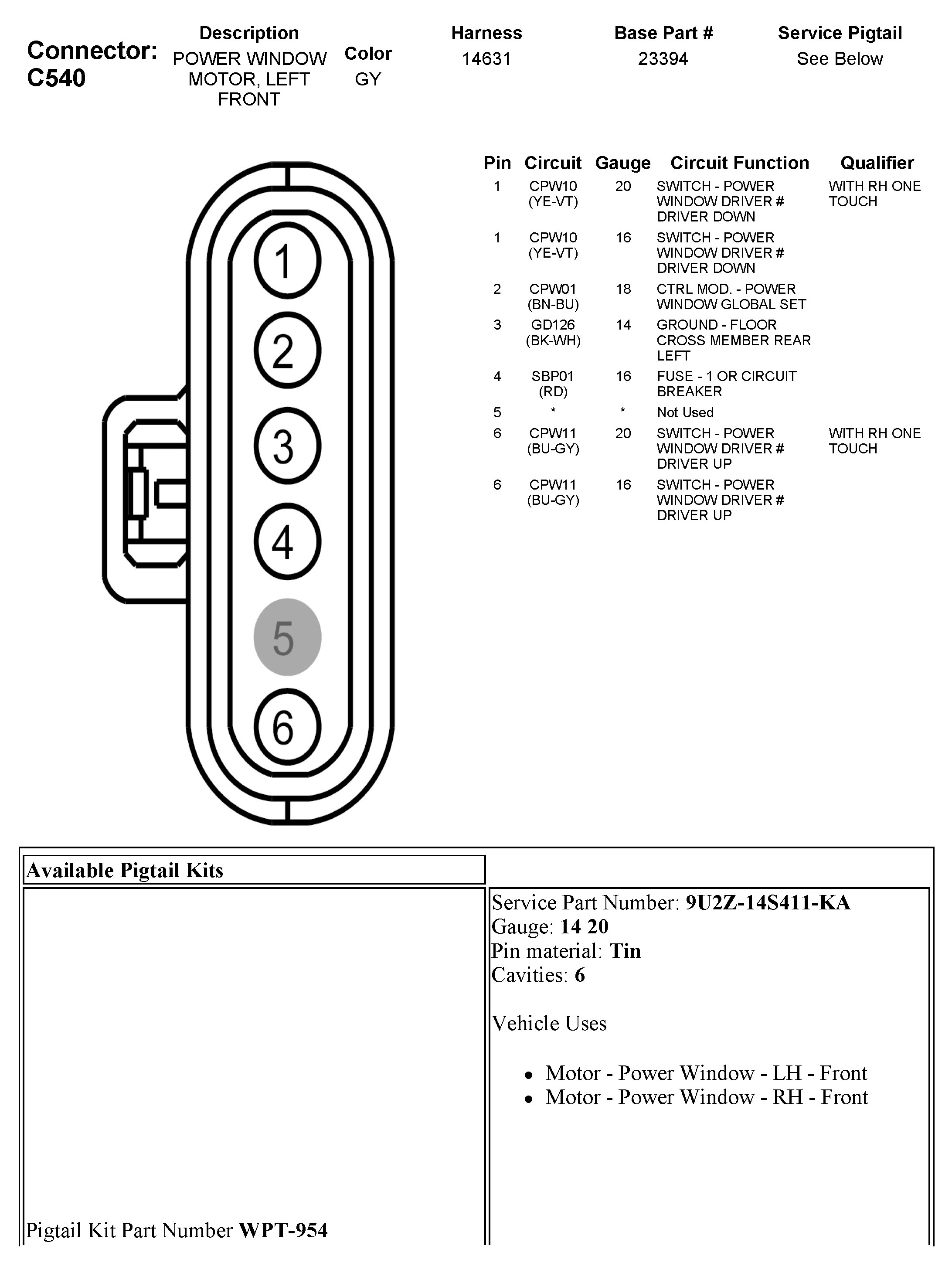 C540 Power Window Motor, Left Front