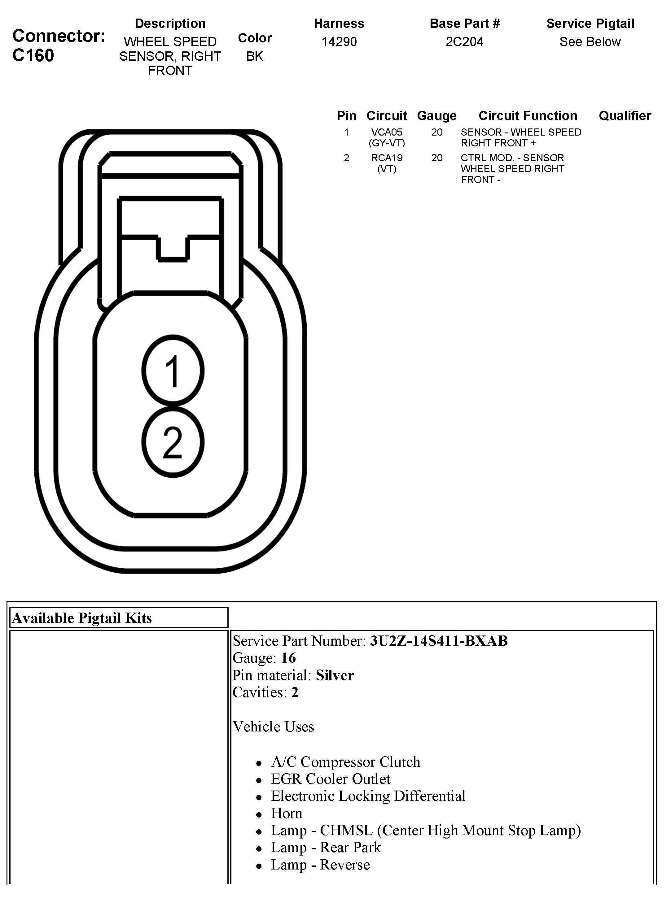 C160 Wheel Speed Sensor, Right Front