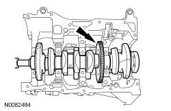 NOTE: Position the crankshaft to the rear of the cylinder block, then position the crankshaft to the front of the cylinder block before tightening the main bearing beam bolts.