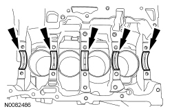 NOTE: If reusing the crankshaft main bearings, install them in their original positions and orientation as noted during disassembly.