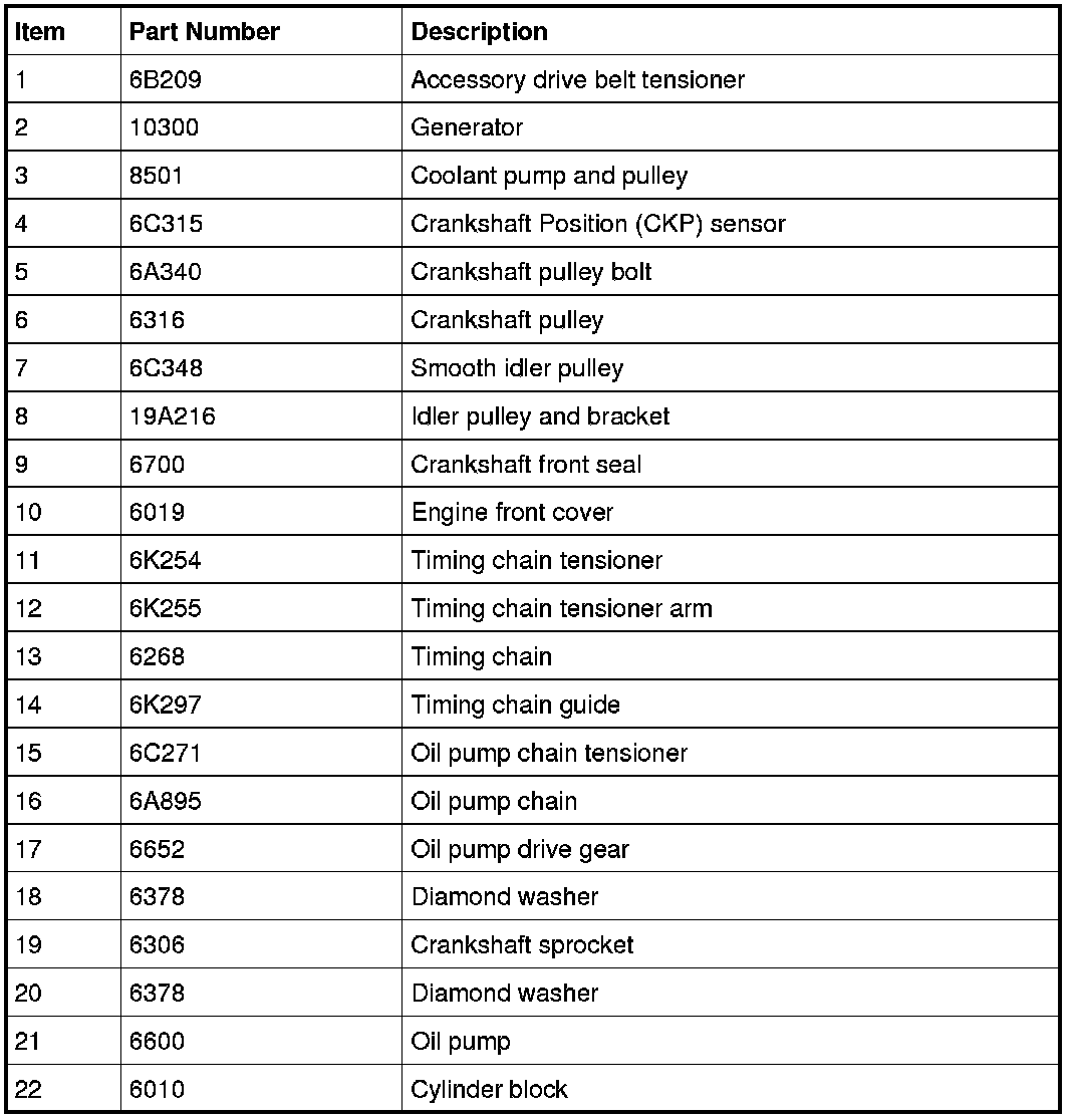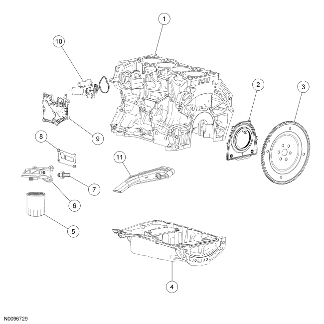 NOTICE: During engine repair procedures, cleanliness is extremely important. All parts must be thoroughly cleaned and any foreign material, including any material created while cleaning gasket surfaces, that enters the oil passages, coolant passages or the oil pan, can cause engine failure.