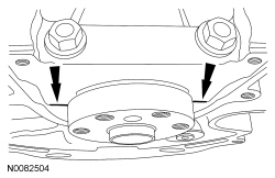 NOTICE: Do not loosen or remove the crankshaft pulley bolt without first installing the special tools as instructed in this procedure. The crankshaft pulley and the crankshaft timing sprocket are not keyed to the crankshaft. The crankshaft, the crankshaft sprocket and the pulley are fitted together by friction, using diamond washers between the flange faces on each part. For that reason, the crankshaft sprocket is also unfastened if the pulley bolt is loosened. Before any repair requiring loosening or removal of the crankshaft pulley bolt, the crankshaft and camshafts must be locked in place by the special service tools, otherwise severe engine damage can occur.