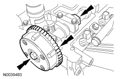 1. Install the camshaft sprockets and the bolts. Do not tighten the bolts at this time.