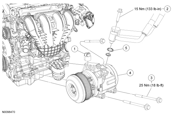 - If A/C flushing equipment is available, carry out flushing of the A/C system prior to installing a new A/C compressor. For additional information, refer to Section 412-00A.