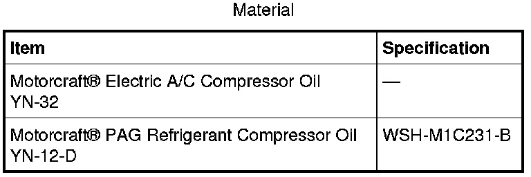 NOTICE: Motorcraft(R) Electric A/C Compressor Oil only must be used as a refrigerant system lubricant for hybrid vehicles. Addition of any oil other than Motorcraft(R) Electric A/C Compressor Oil to the hybrid vehicle refrigerant system will damage the electric Air Conditioning (A/C) compressor and contaminate the refrigerant system.