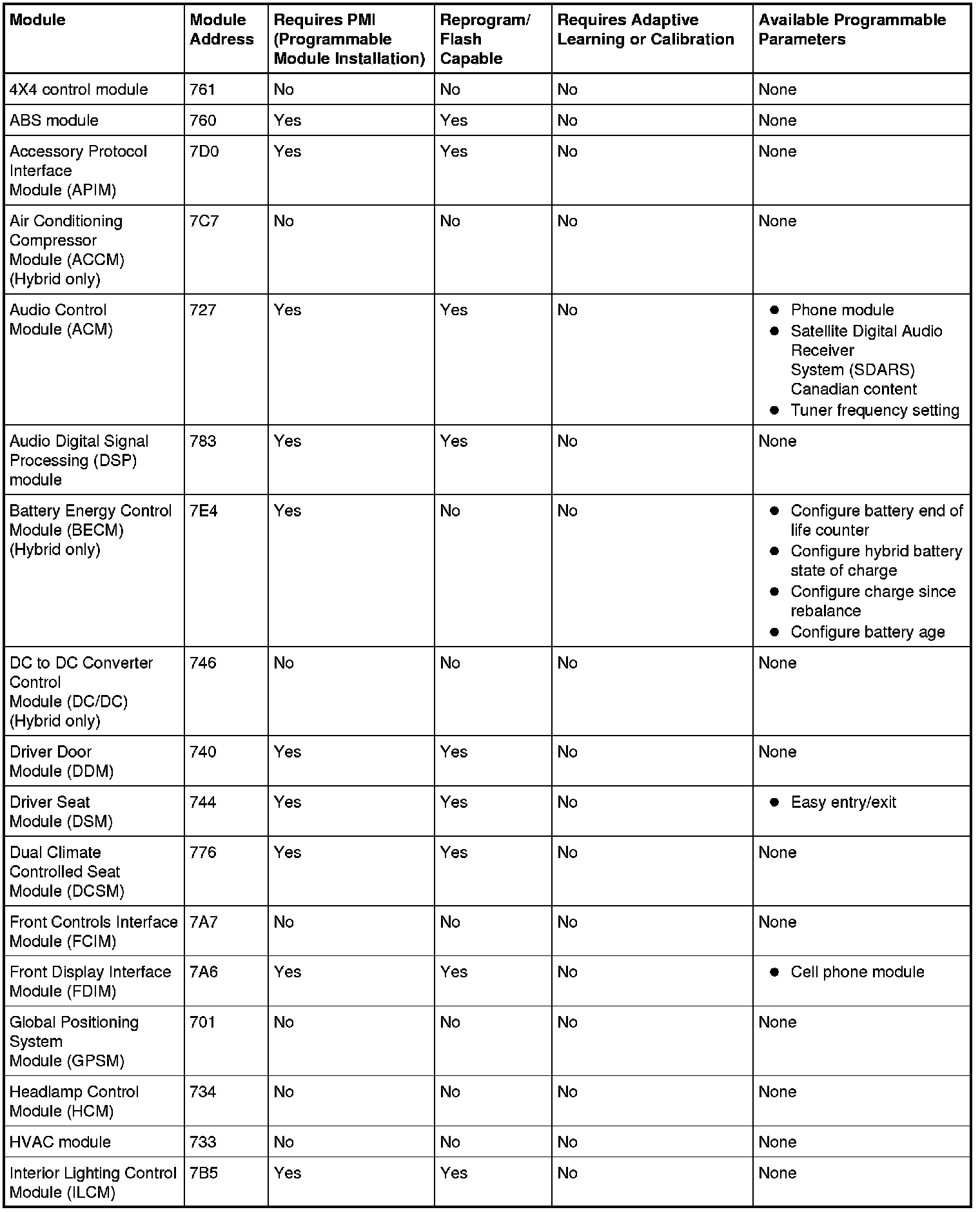 Programmable parameters are customer preference items that may be modified by the dealer via scan tool or in some cases modified by the customer following a procedure listed in the vehicle Owner's Literature. While many configuration options may exist for a module, only a few of these options are programmable parameters.