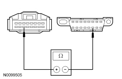 - Measure the resistance between the 4X4 control module C3253-11, circuit VDB05 (WH), harness side and the DLC (Data Link Connector) C251-14, circuit VDB05 (WH), harness side.