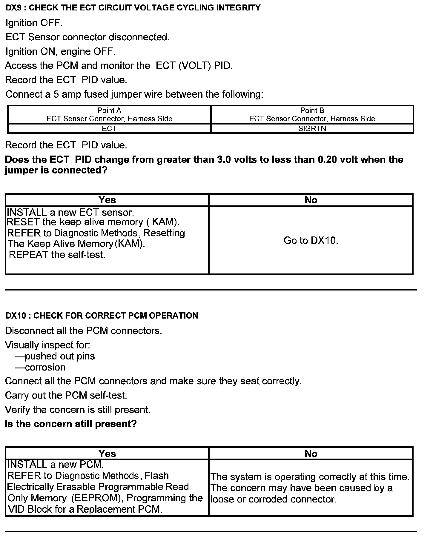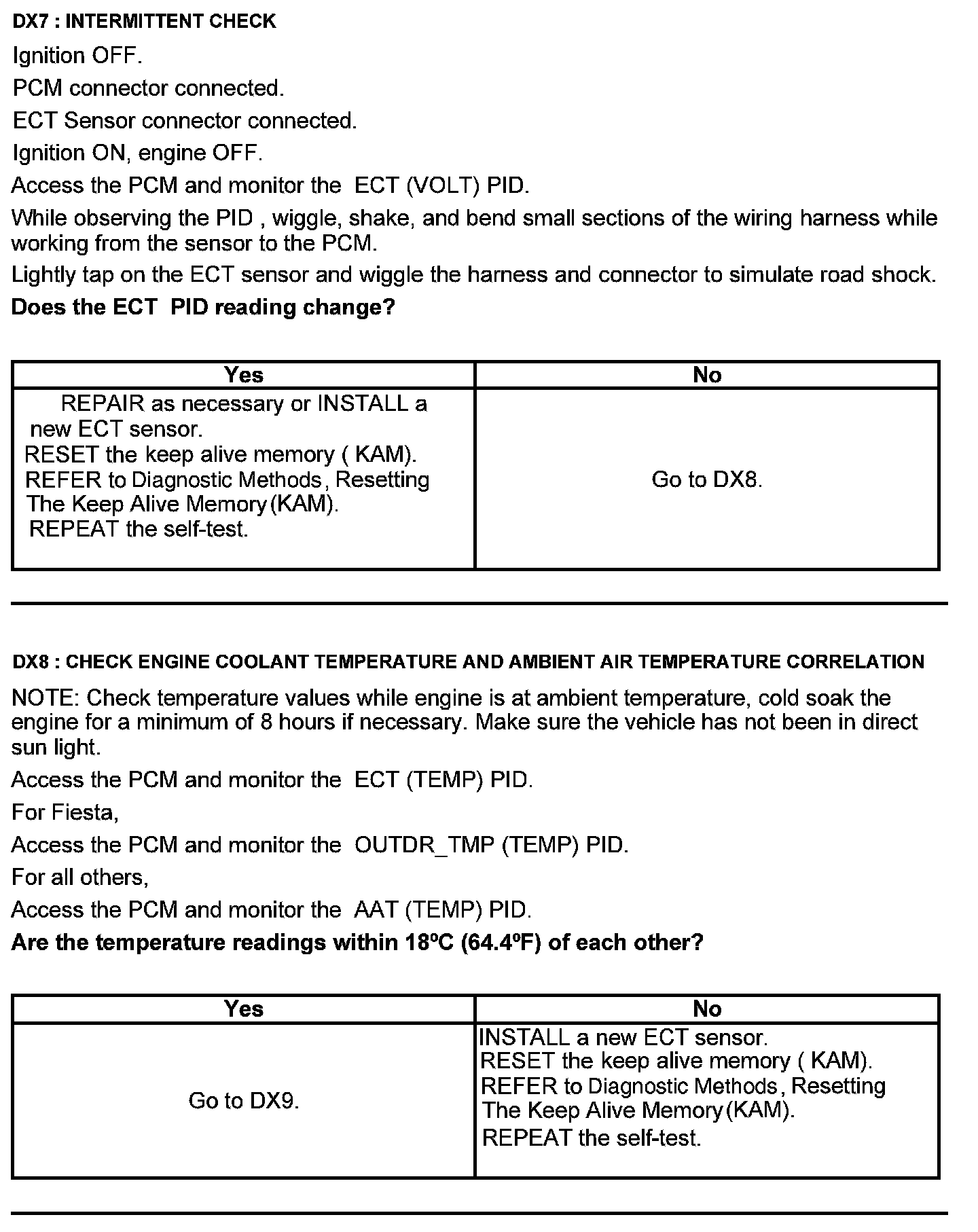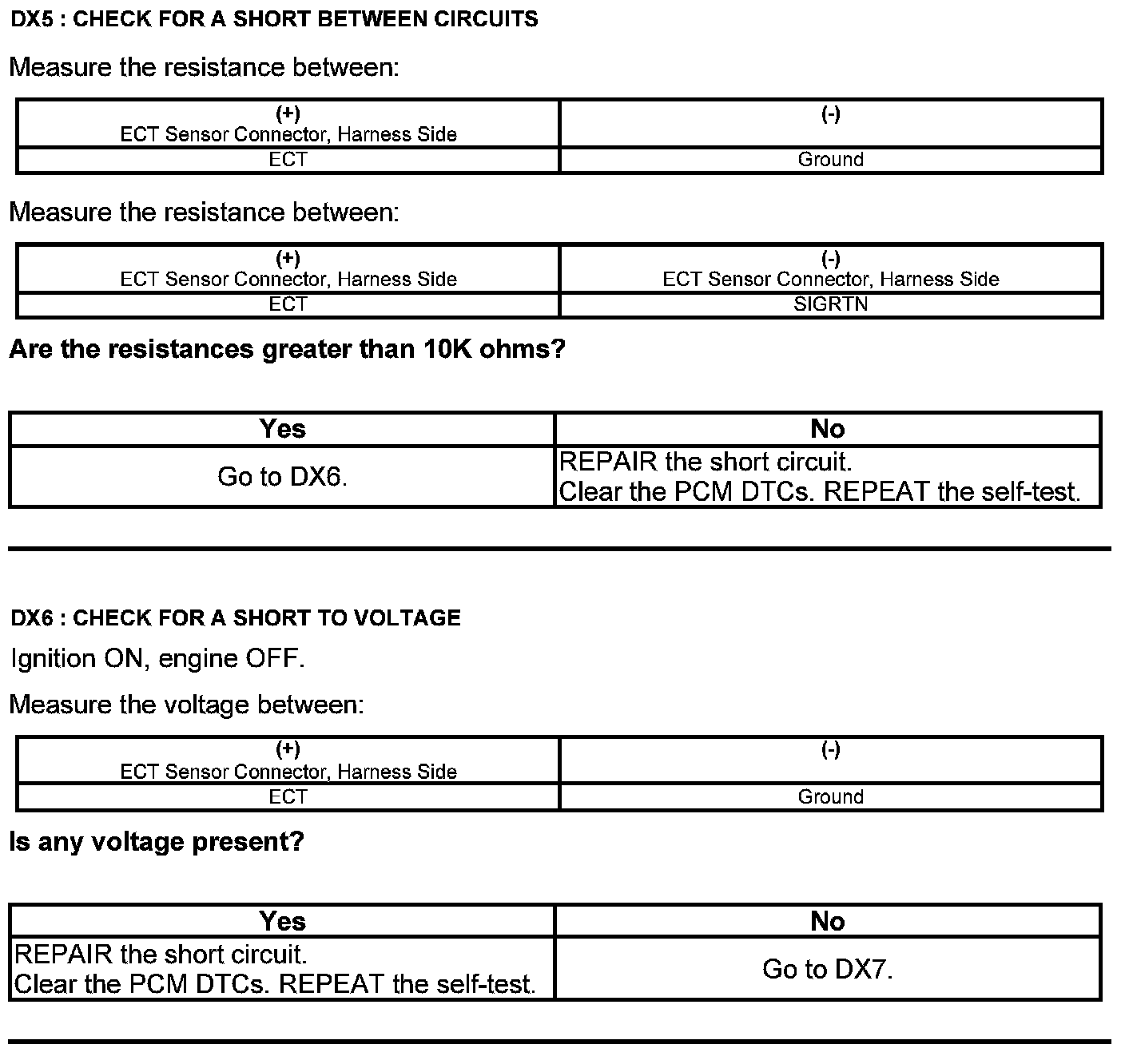 Test DX: Engine Coolant Temperature (ECT) Sensor
