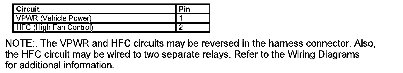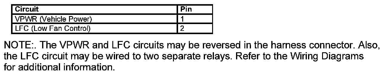 Low Fan Control (LFC) Relay Connector