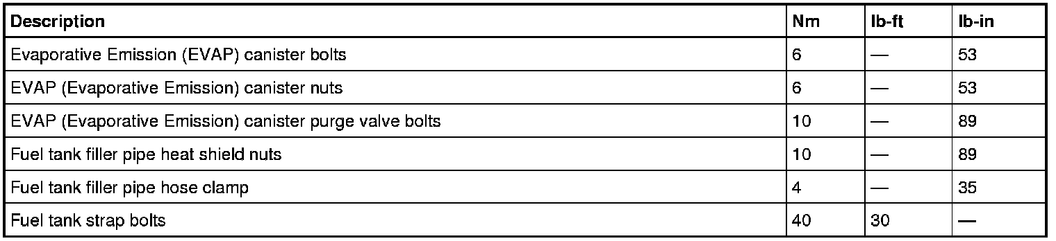 Evaporative Emissions System: Specifications