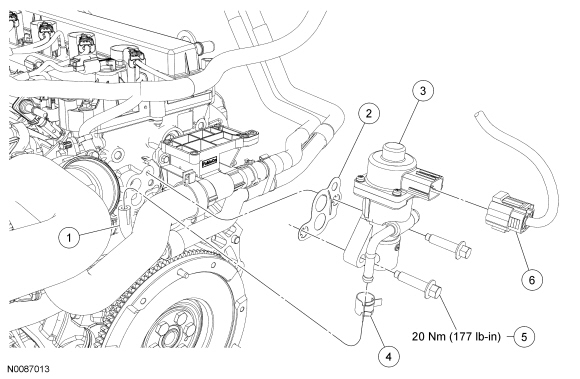 6. NOTICE: Do not use metal scrapers, wire brushes, power abrasive discs or other abrasive means to clean the sealing surfaces. These tools cause scratches and gouges that make leak paths. Use a plastic scraping tool to remove all traces of the Exhaust Gas Recirculation (EGR) valve gasket.