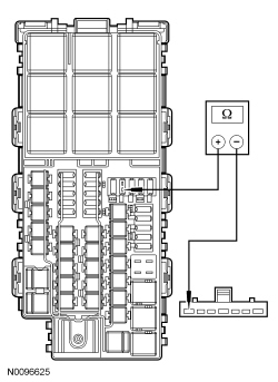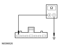- Measure the resistance between ignition switch C250-7, circuit CDC35 (BU/WH), harness side and ground.