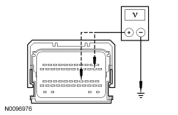 - With the ignition in the START position, measure the voltage between ground and: