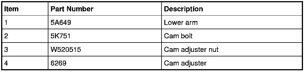 2. Remove the cam adjuster nut, cam adjuster, cam bolt and the lower arm.