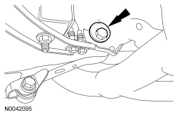 - To install, tighten the new nut to 101 Nm (74 lb-ft) with the suspension at the bushing fastener tightening position.
