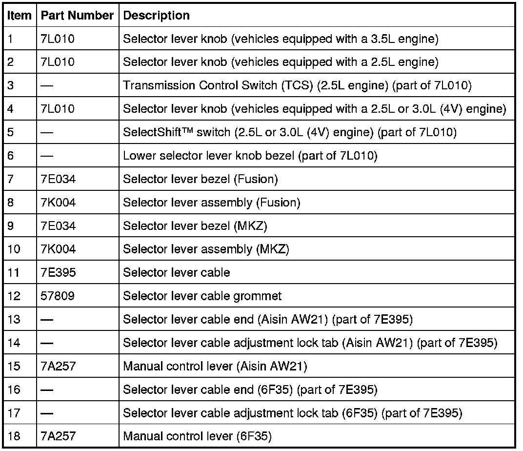 - a selector lever cable that connects the transaxle range selector lever to the selector lever assembly.