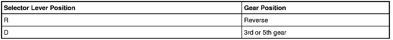 With the fail-safe function, if any malfunction should occur in the transaxle system, the TCM (Transmission Control Module) will output a control signal, and control will be carried out to make traveling a minimum distance possible. If all shift solenoids malfunction, the TCM (Transmission Control Module) will cancel the output of control signals to the solenoids. If this happens, the automatic transmission gear shifting will be controlled by transmission fluid pressure circuits only and the gears will shift as shown in the following table.