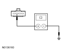 - Measure the resistance between the rain sensor C914-1, circuit GD139 (BK/YE), harness side and ground.