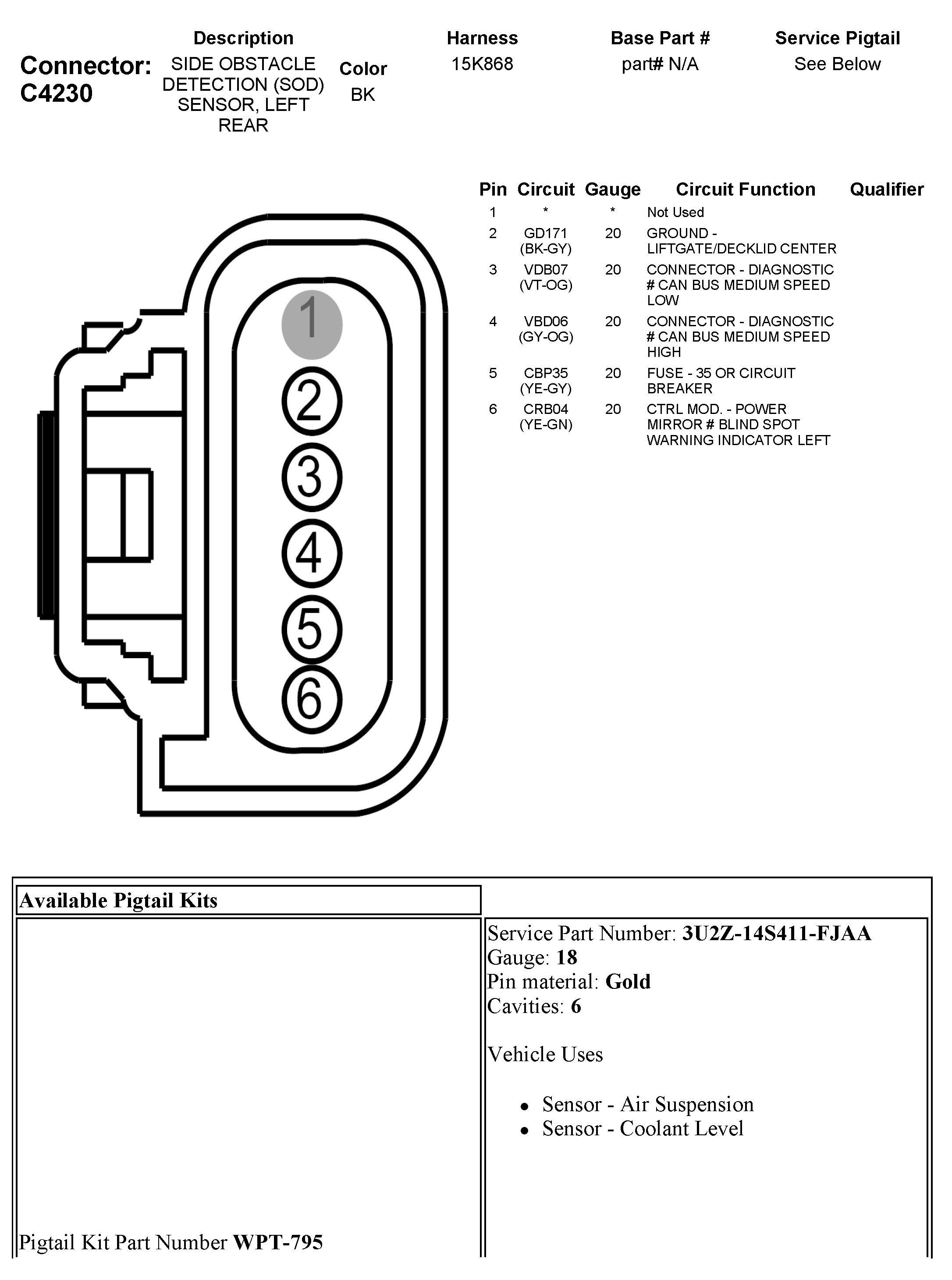 C4230 Side Obstacle Detection (SOD) Sensor, Left Rear
