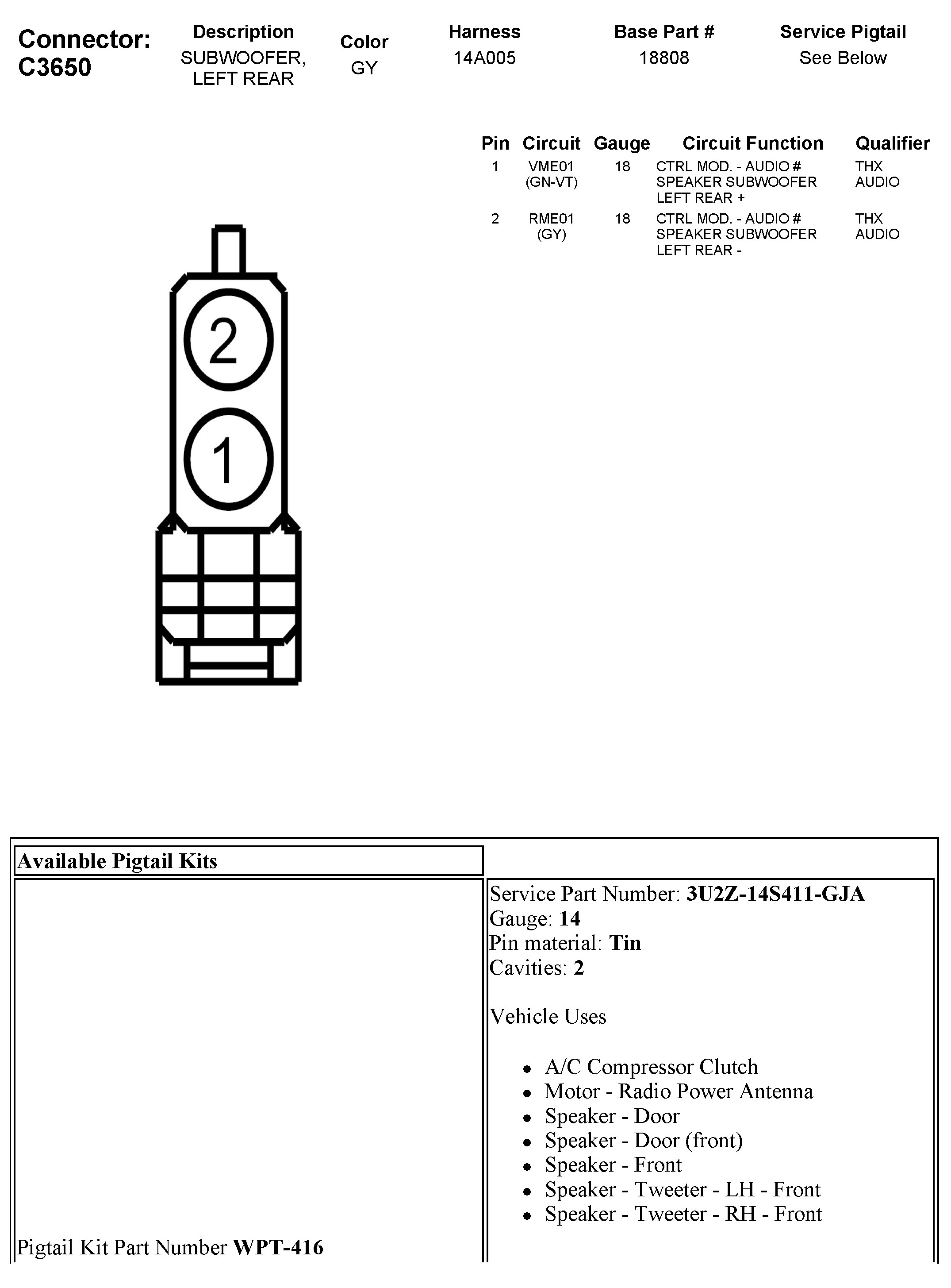 C3650 Subwoofer, Left Rear