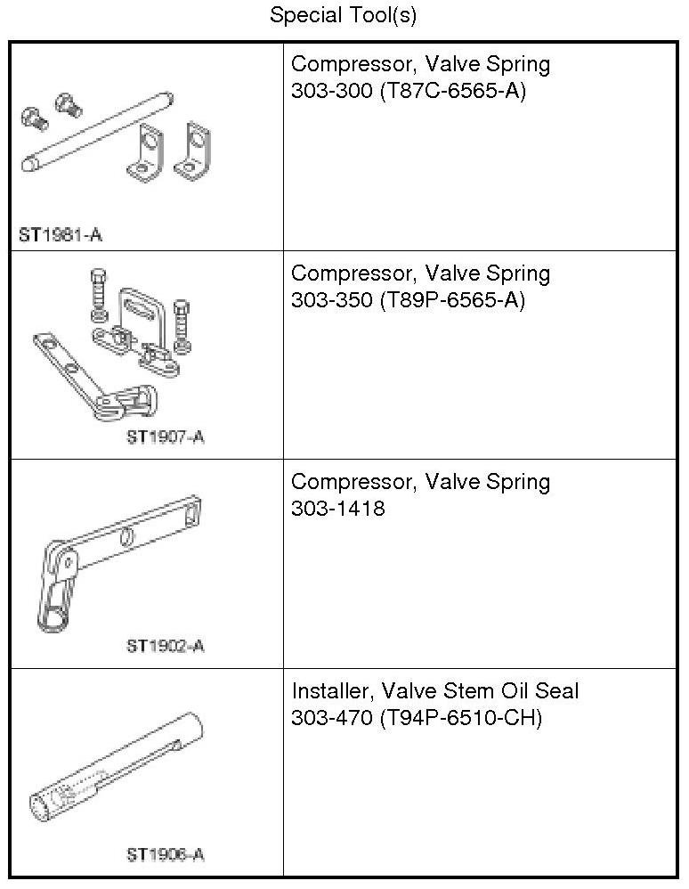 1. Using the Valve Spring Compressors, remove the keys, retainer and spring.