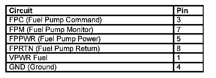 Fuel Pump Control Module Relay Connector - Refer to the Wiring Diagrams for schematic and connector information.