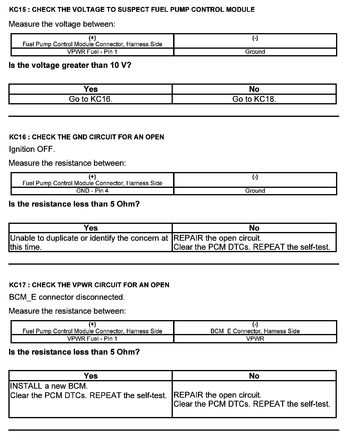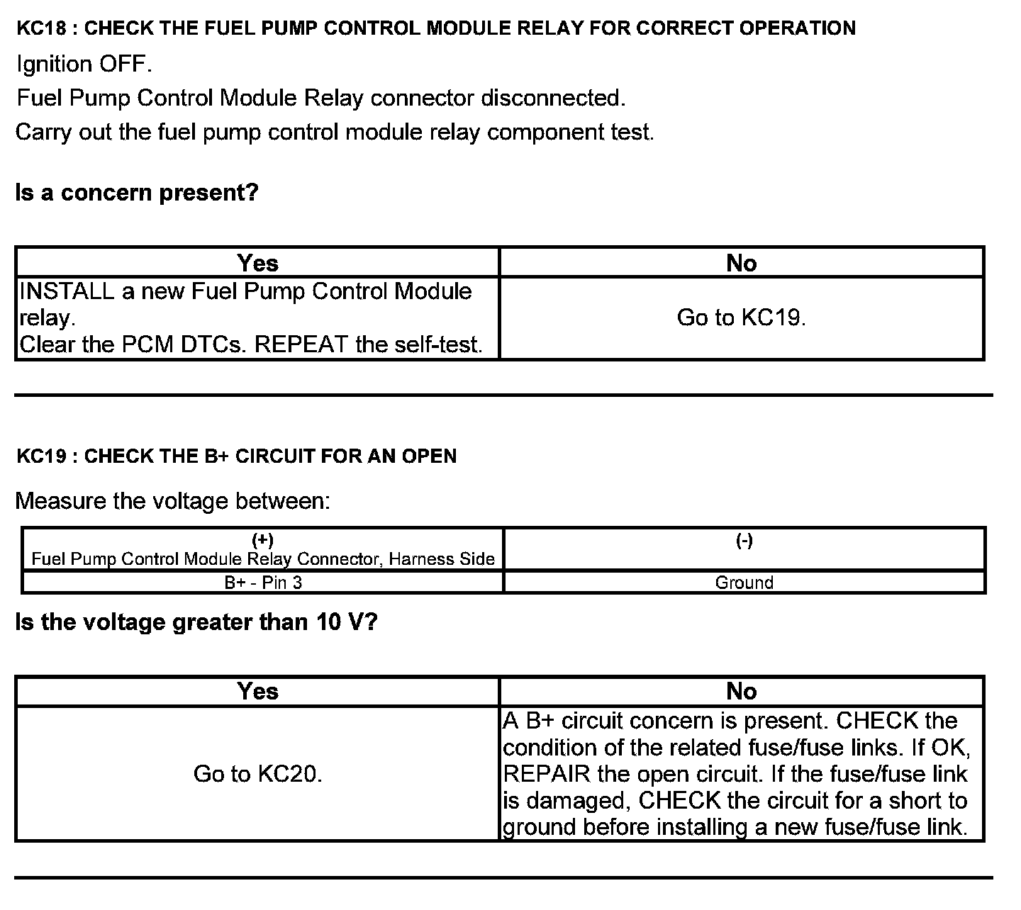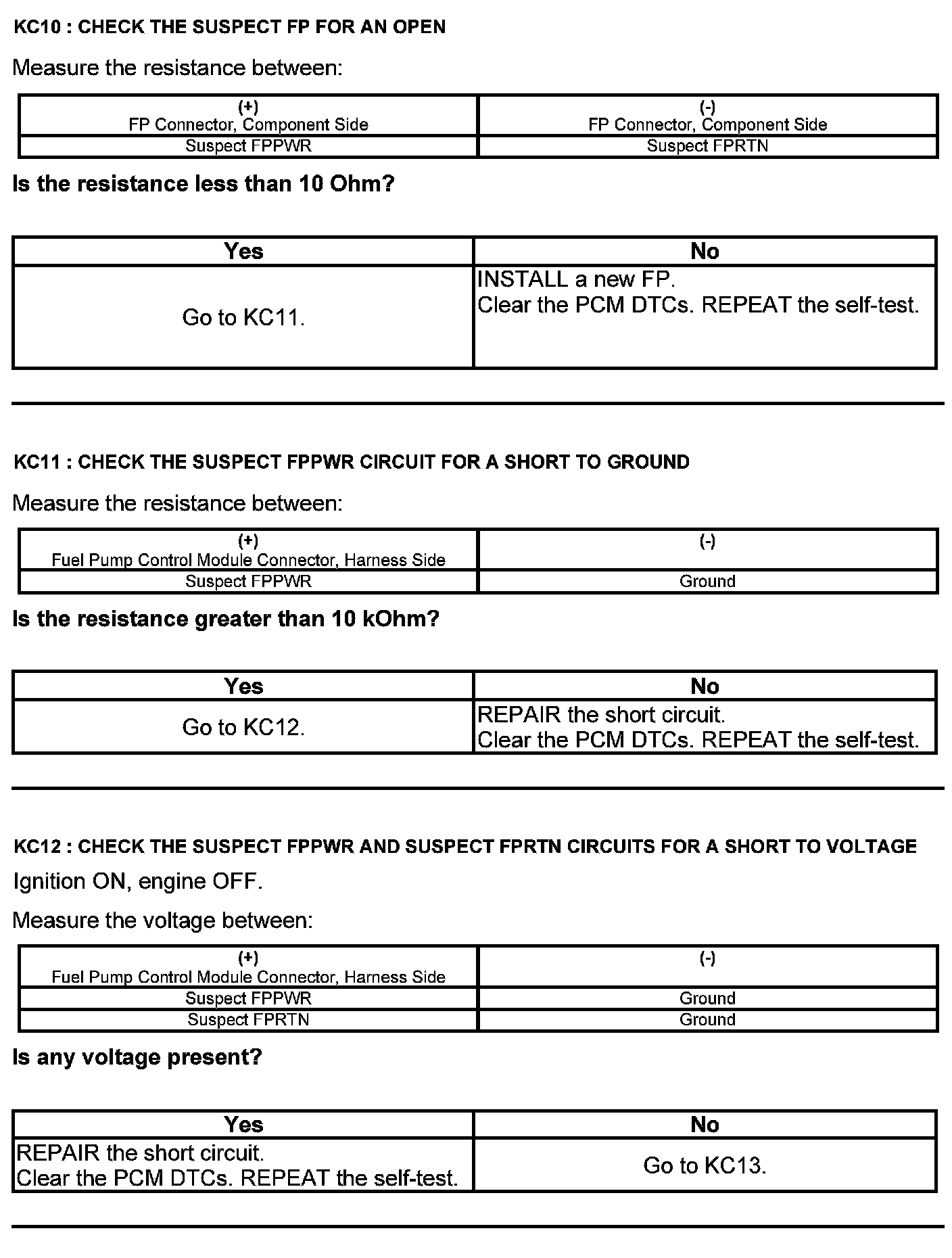 Test KC: Fuel Pump Control Module