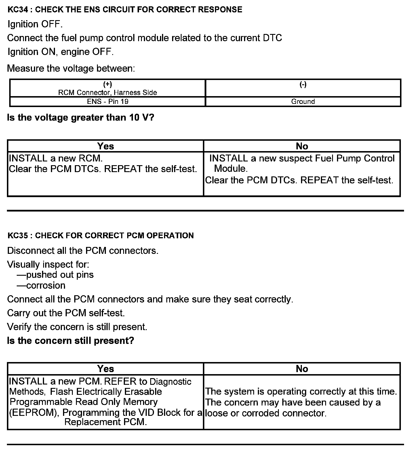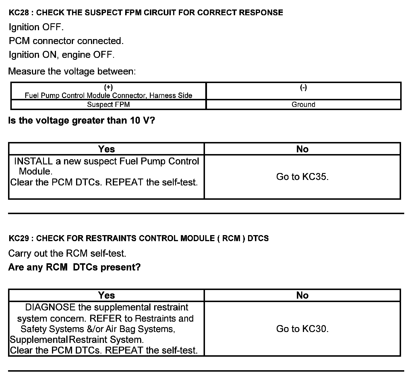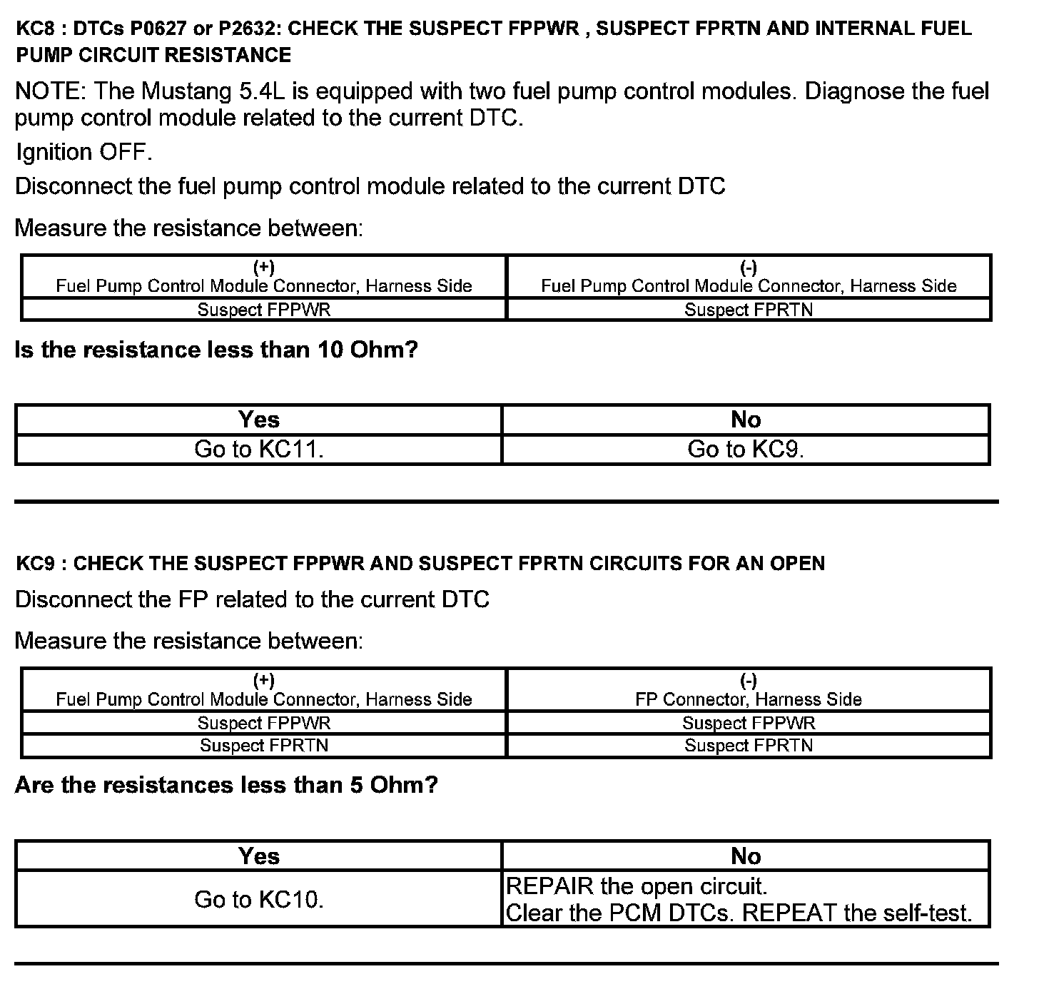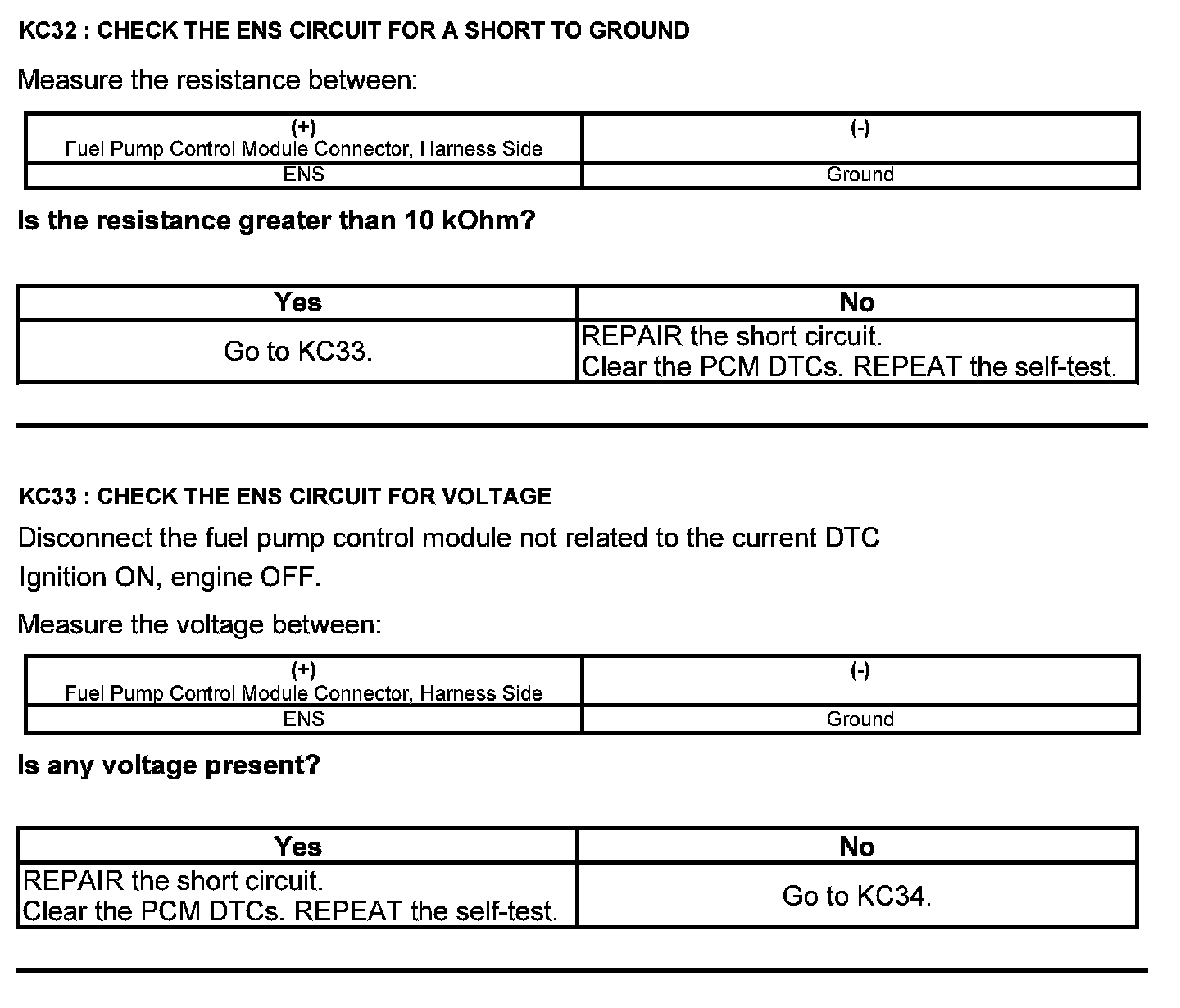 Test KC: Fuel Pump Control Module