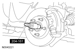 10. NOTICE: Do not tighten the halfshaft nut with the vehicle on the ground. The nut must be tightened to specification before the vehicle is lowered onto the wheels. Wheel bearing damage will occur if the wheel bearing is loaded with the weight of the vehicle applied.