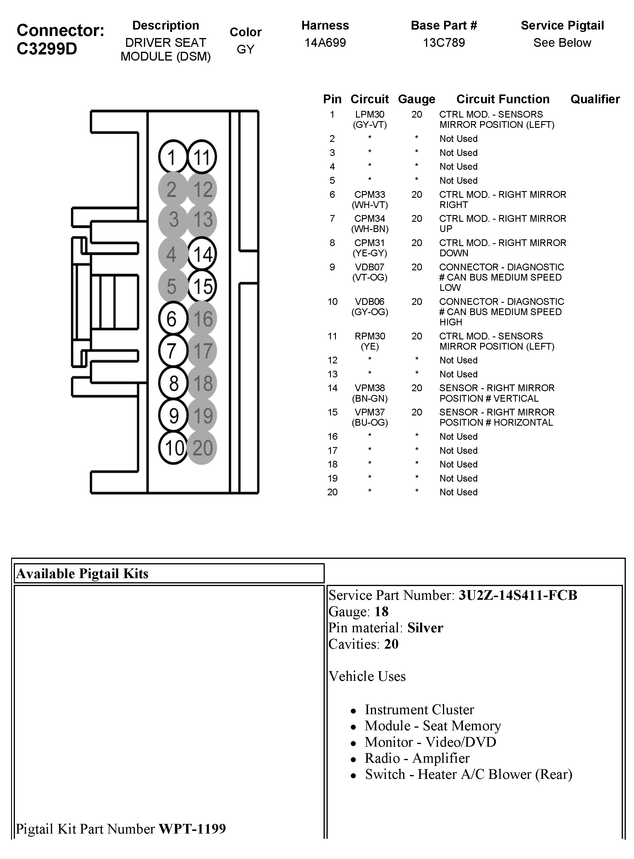 C3299D Driver Seat Module (DSM)
