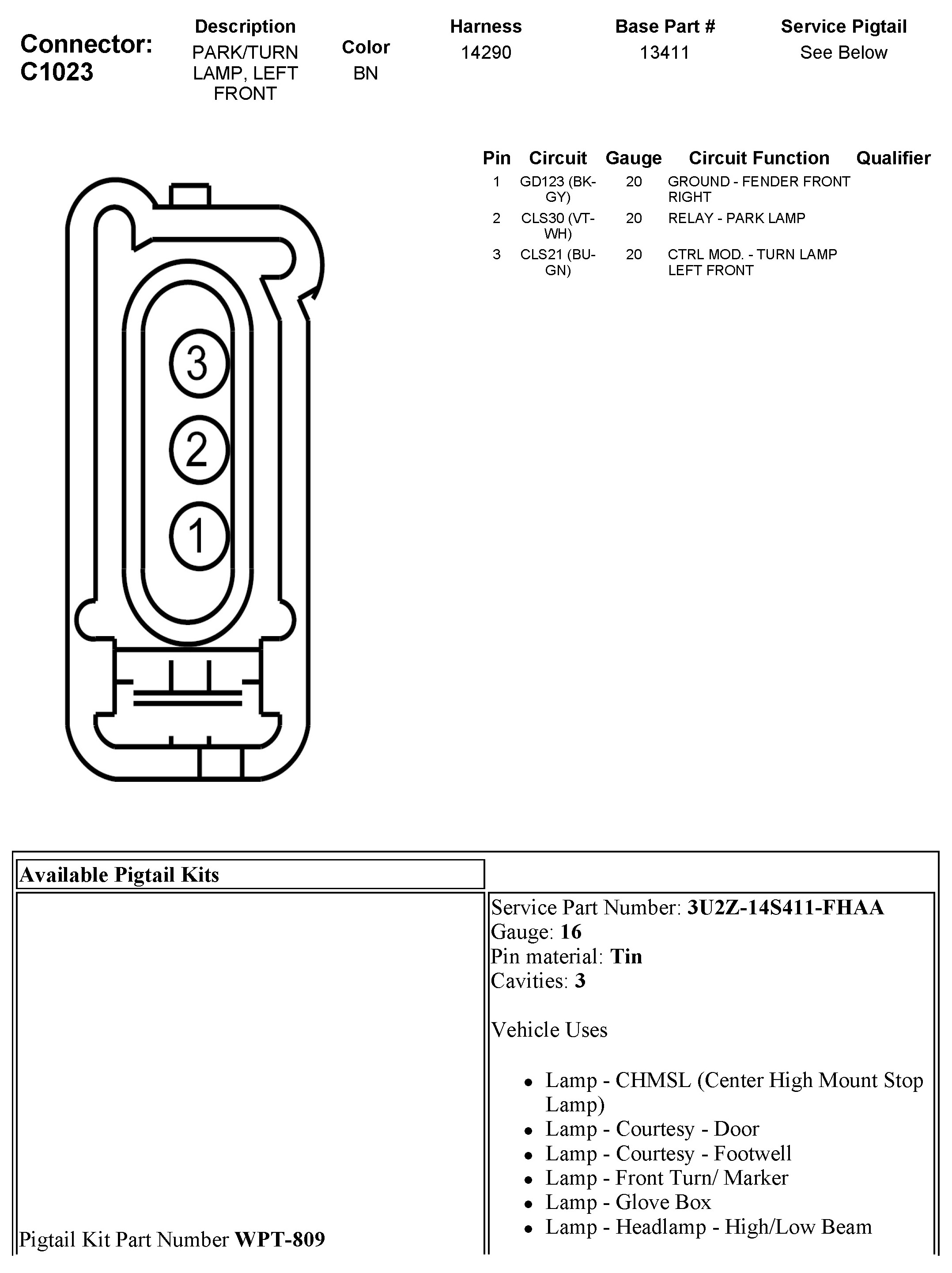 C1023 Park/Turn Lamp, Left Front