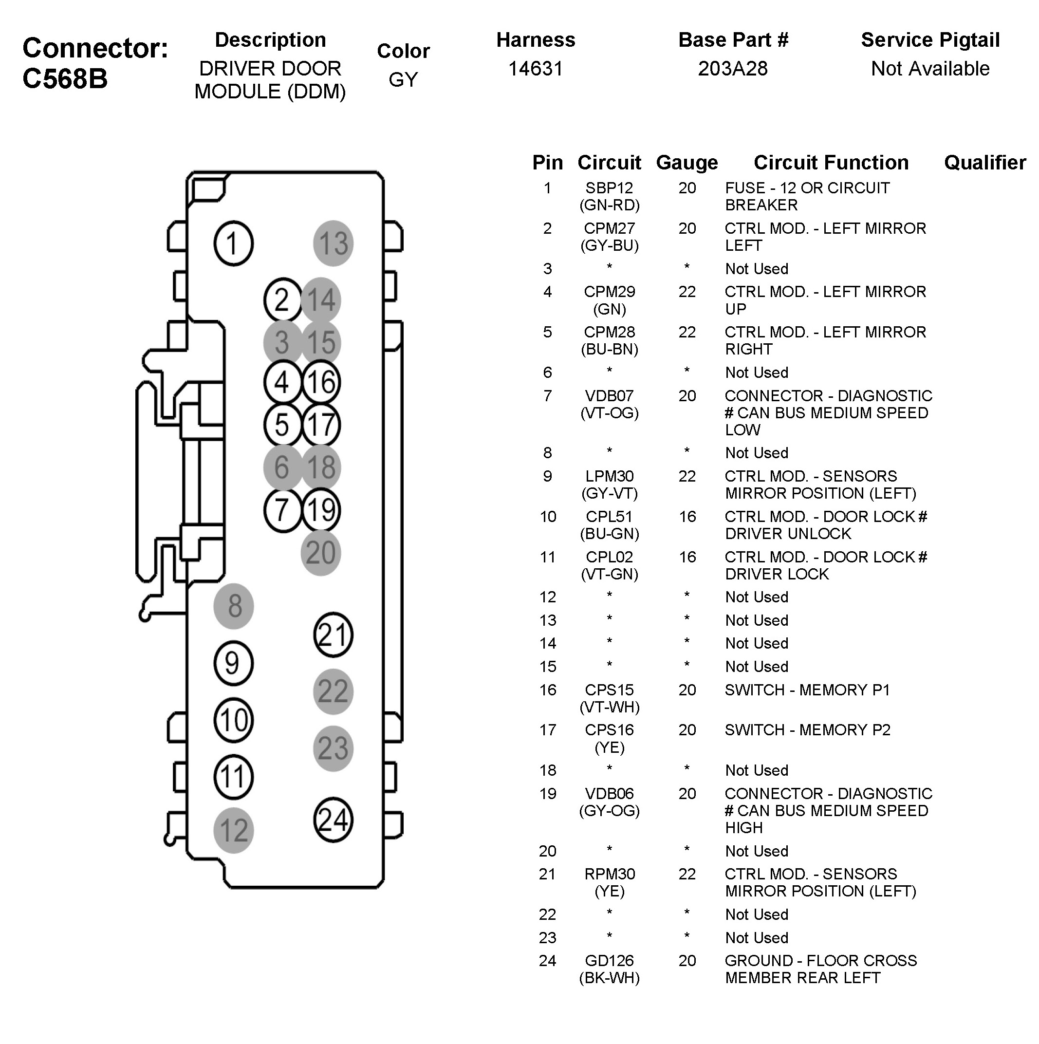 C568B Driver Door Module (DDM)