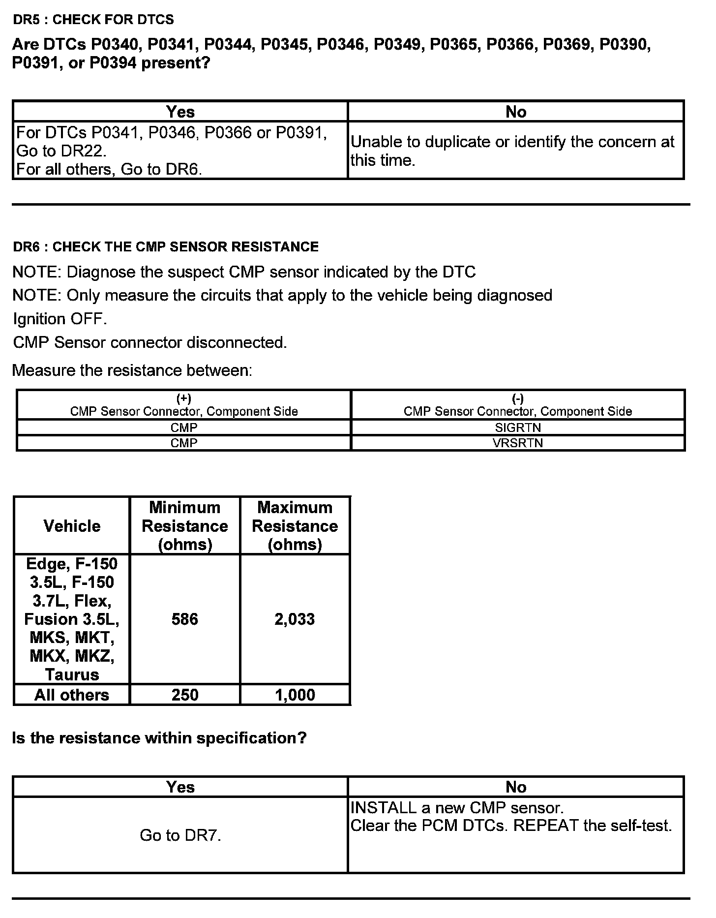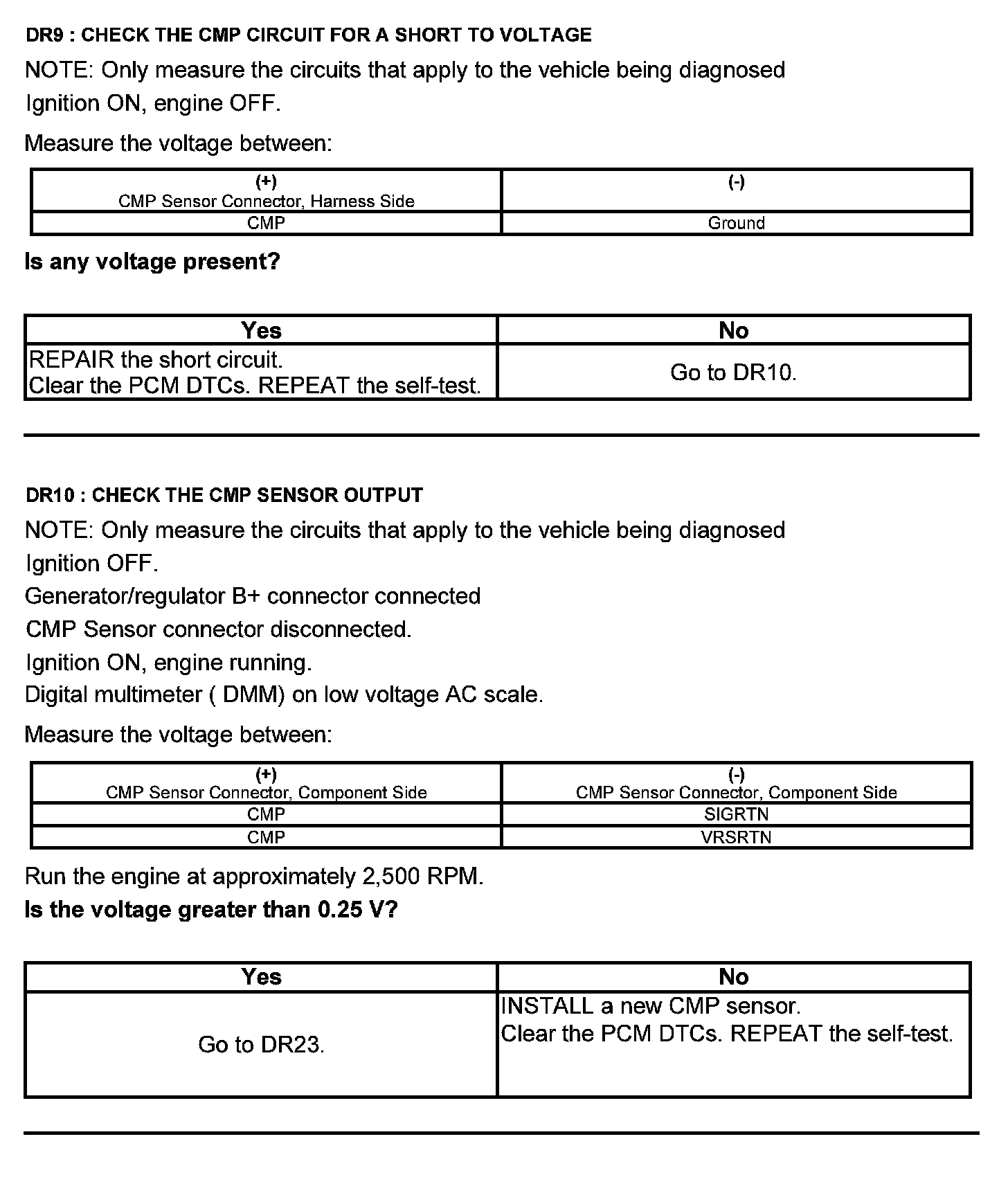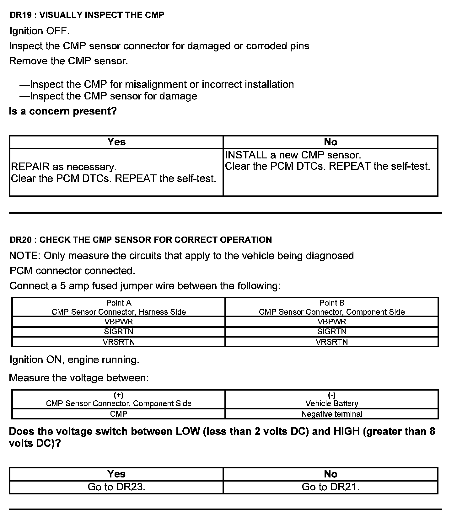 Test DR: Camshaft Position (CMP) Sensor