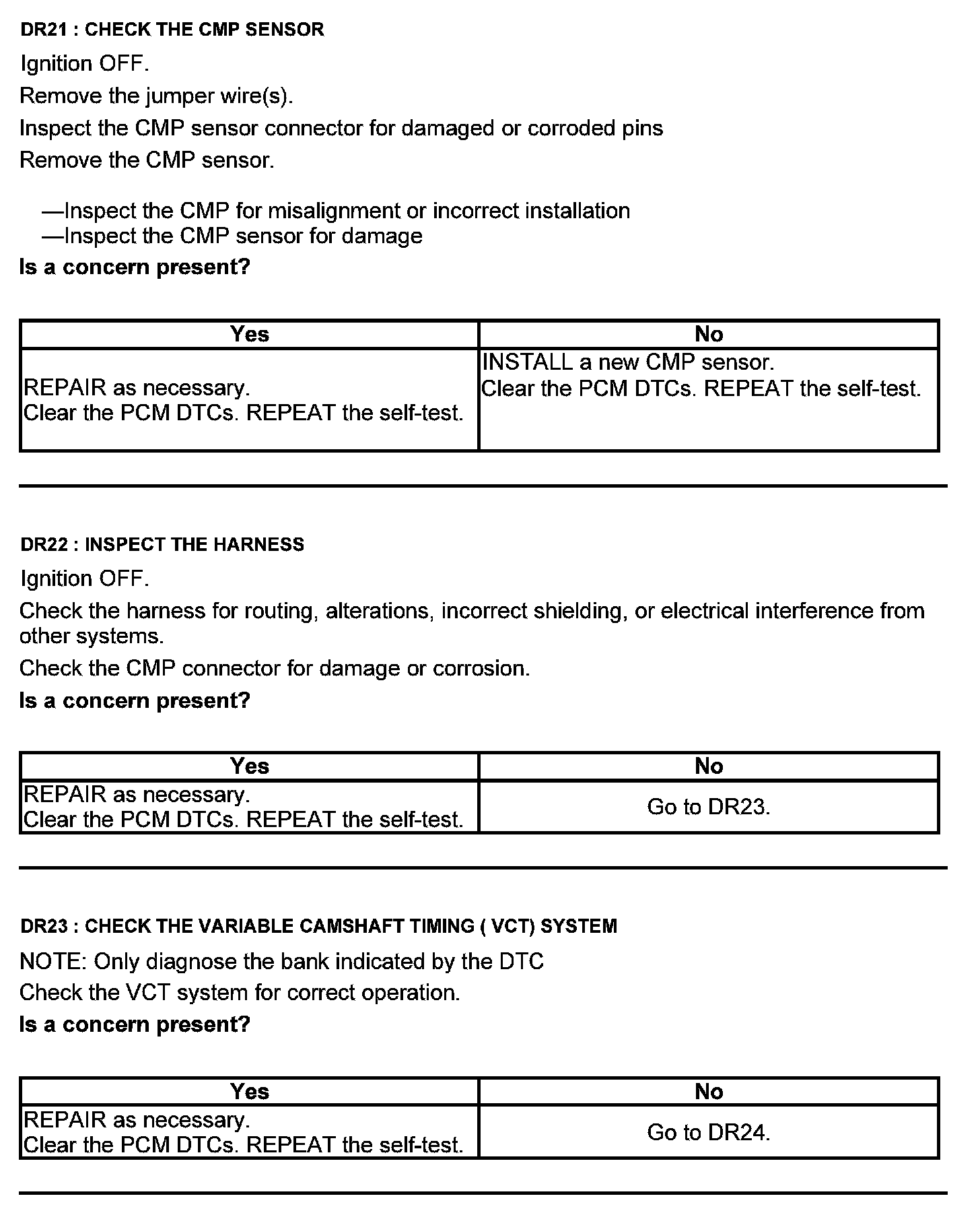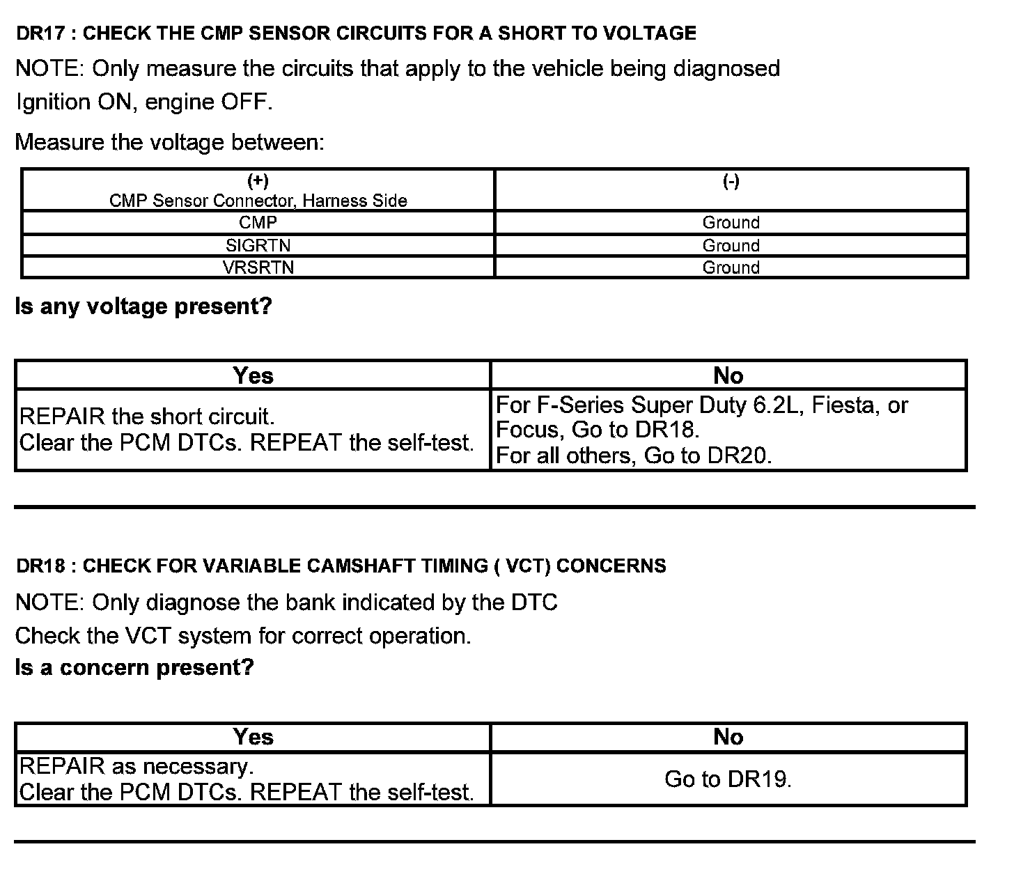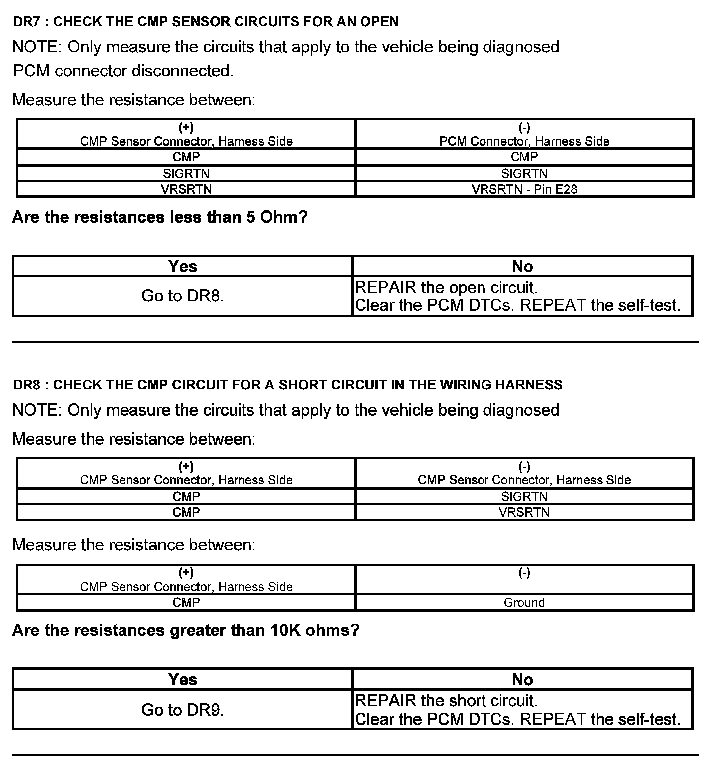 Test DR: Camshaft Position (CMP) Sensor