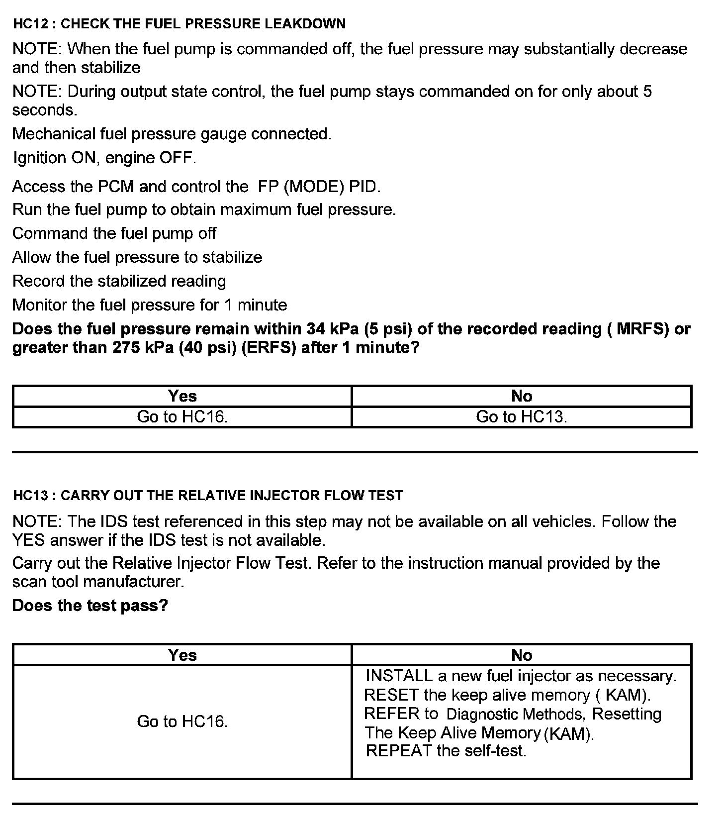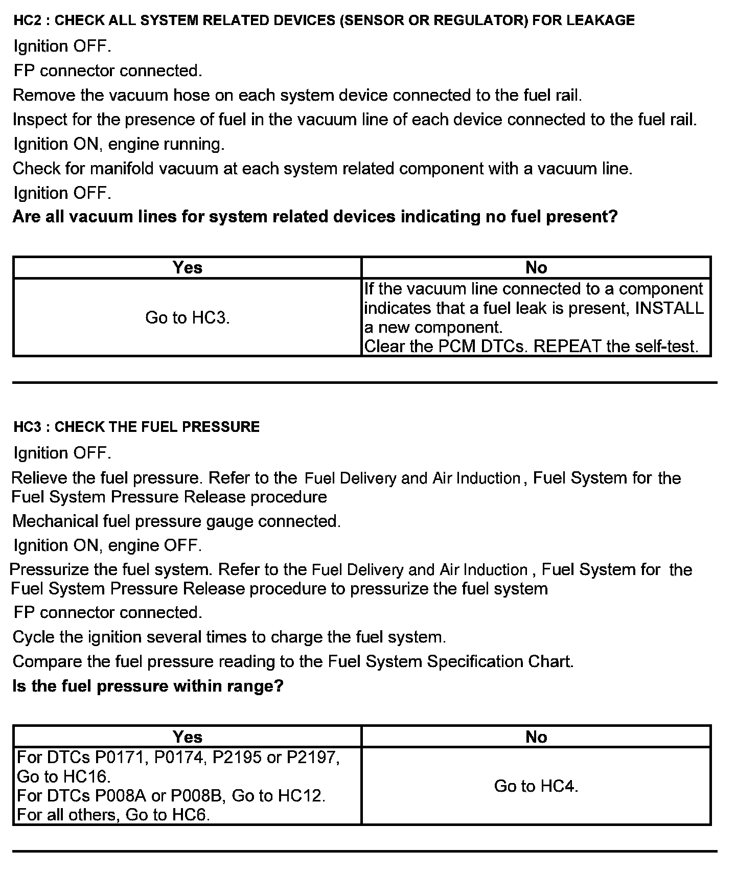 Test HC: Fuel Delivery System