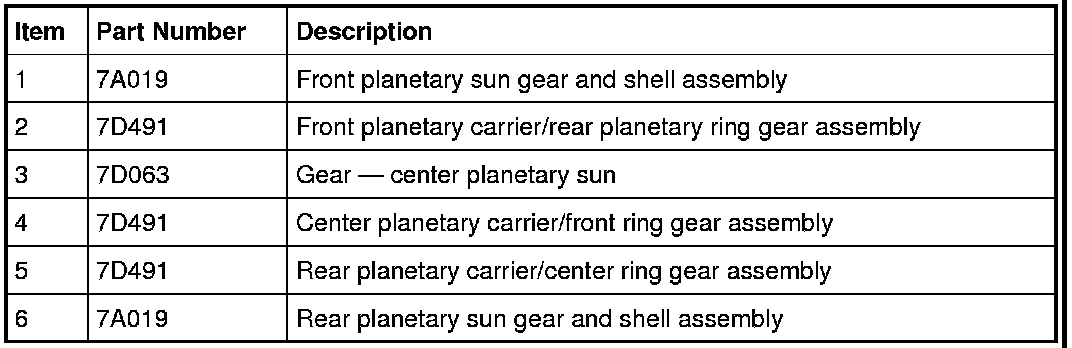 The front planetary ring gear is splined to the center planetary carrier and transfers power from the center planetary gearset to the front planetary gearset in 1st, 2nd, 3rd and 4th gears.