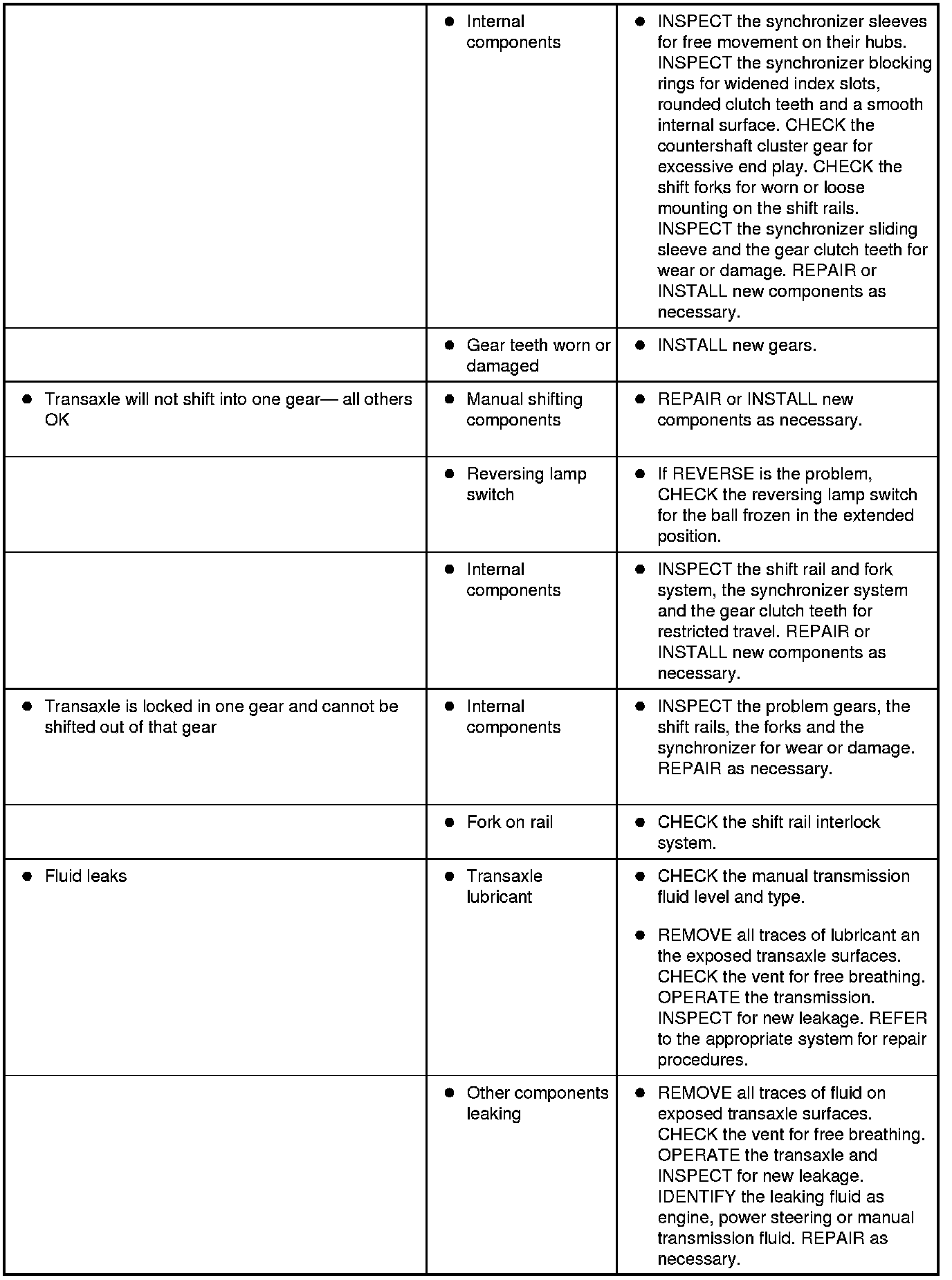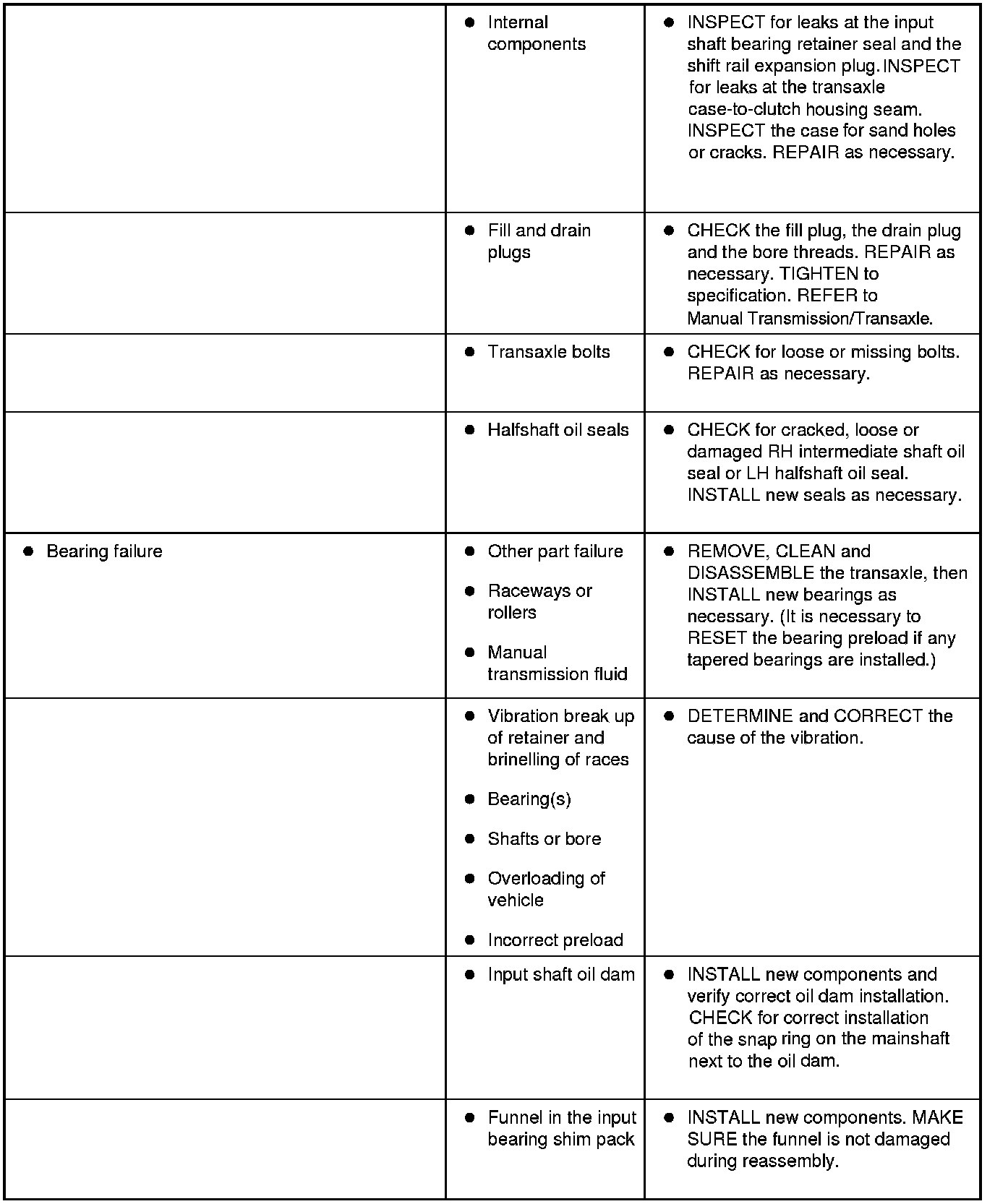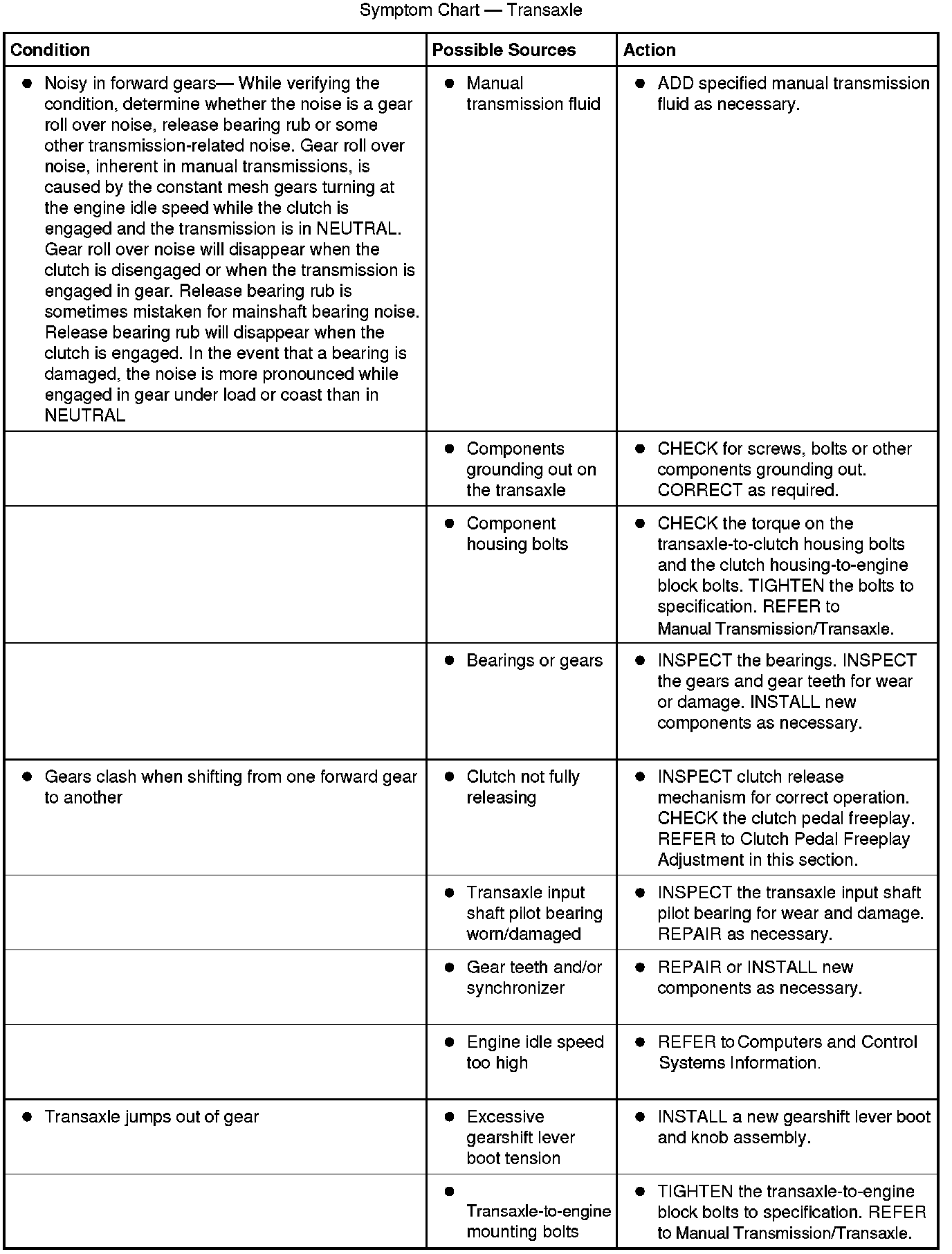Symptom Chart - Transaxle