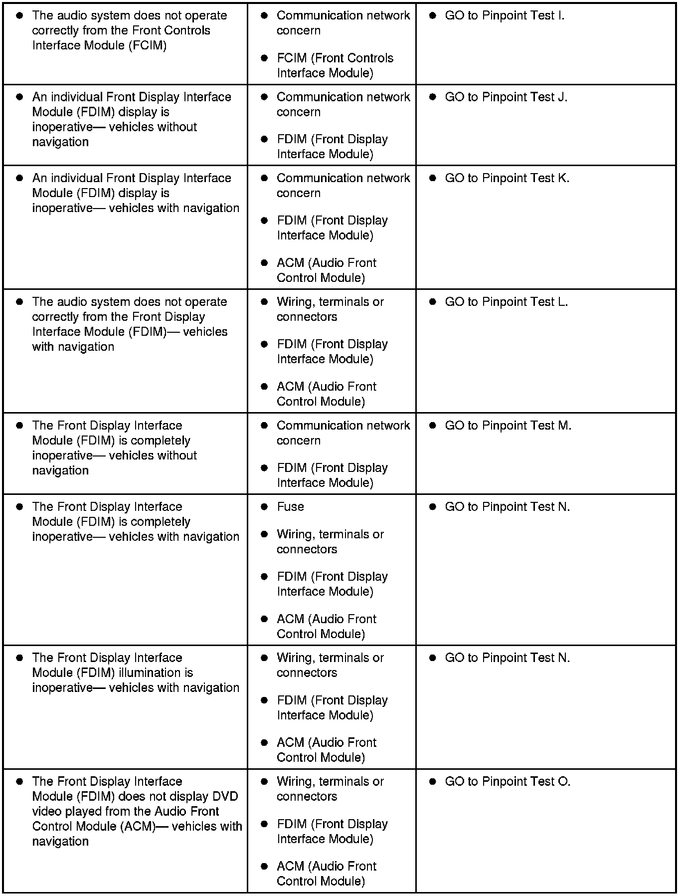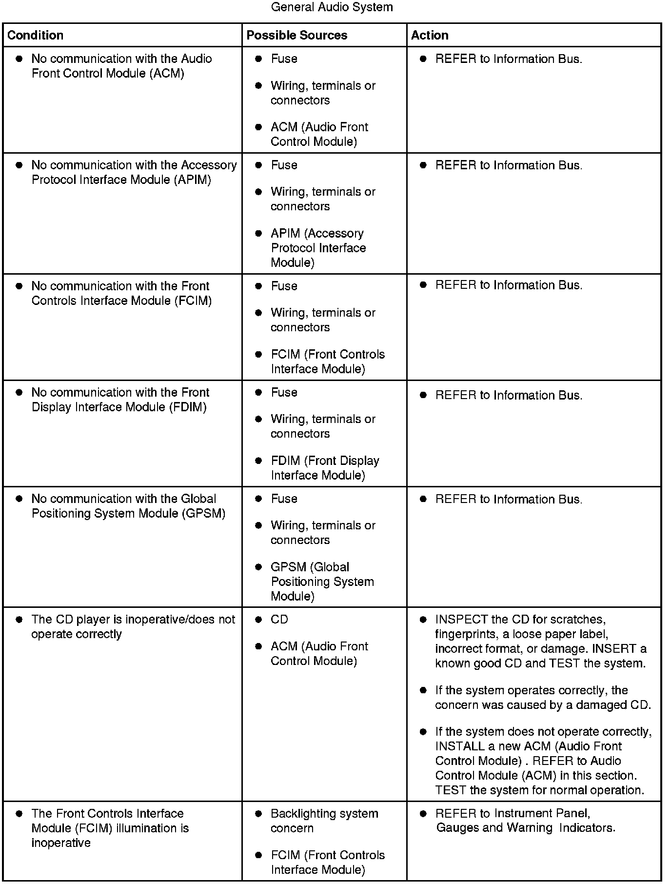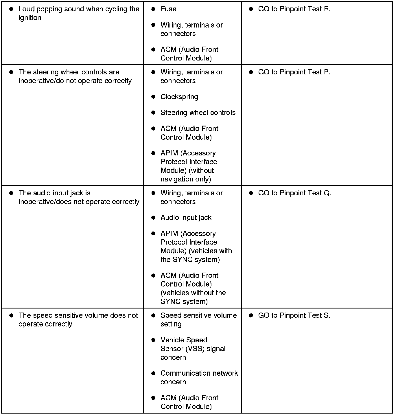 Symptom Chart - General Audio System